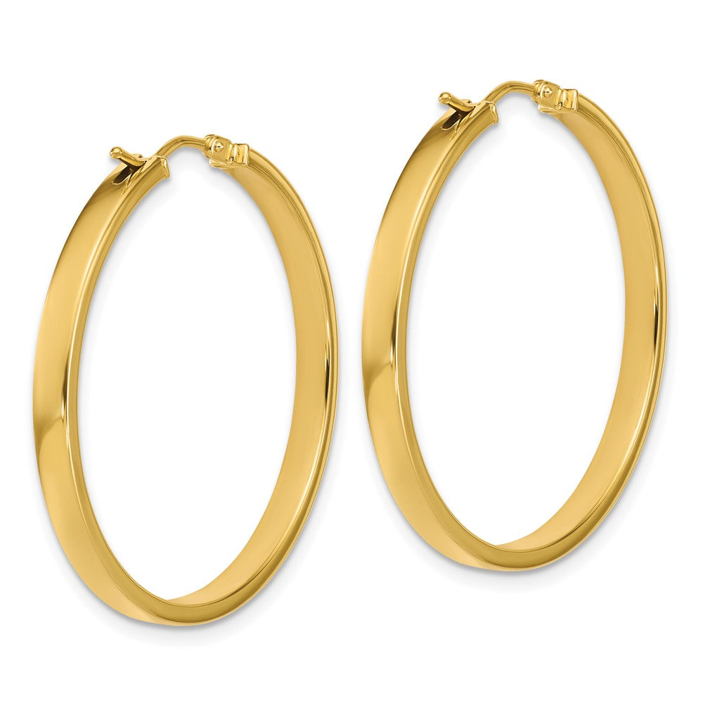The 14K Yellow Gold Polished Square Tube Round Hoop Earrings are the perfect addition to your jewelry collection. Crafted from high-quality 14K gold, these earrings feature a smooth, polished finish that adds sleek shine. Each pair measures 35 mm in length with a 3 mm width, making them lightweight and comfortable for daily wear. The unique square tube design gives these hoops a modern touch, while the wire and clutch closure ensure a secure fit. With a lifetime guarantee, the 14K Yellow Gold Polished Square Tube Round Hoop Earrings bring style and durability together in one elegant piece.