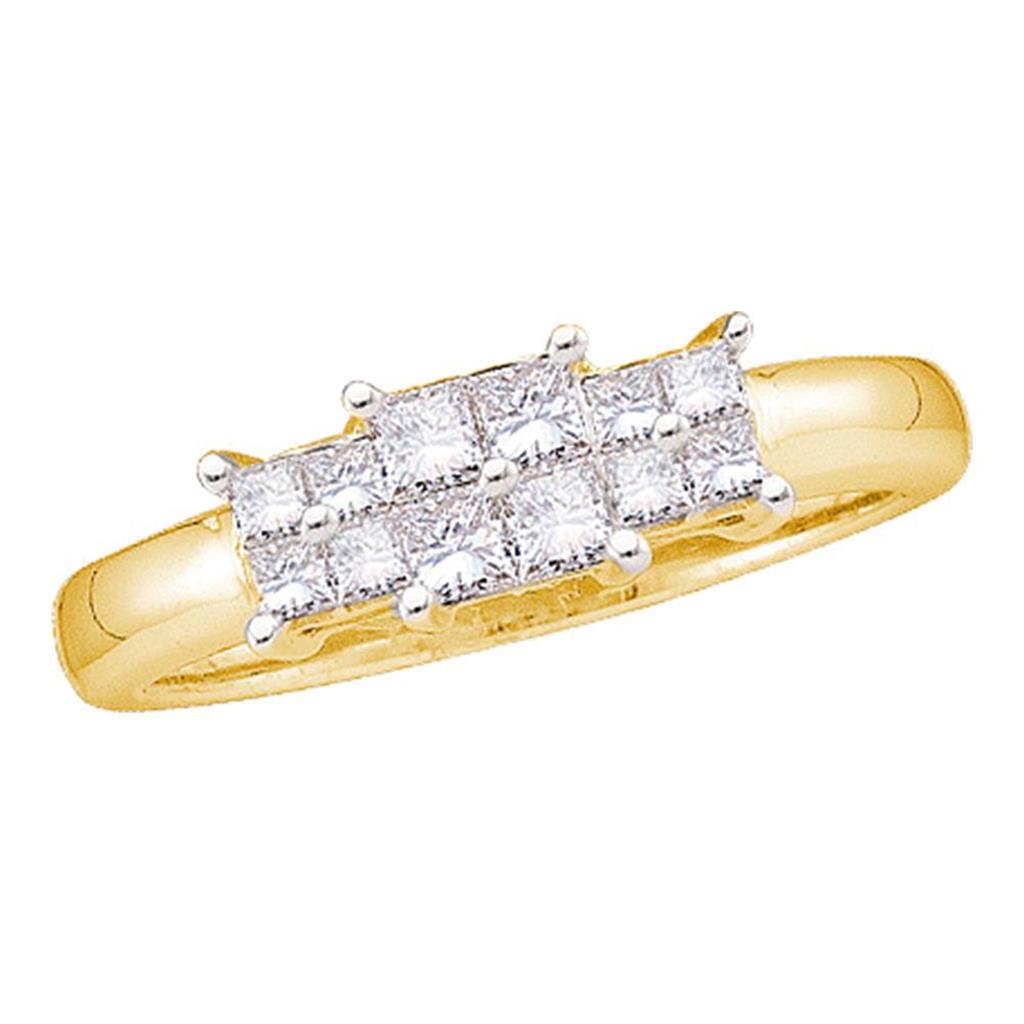The '14k Yellow Gold Princess Diamond 3-stone Bridal Engagement Ring 1/2 Cttw' is an exquisite piece of jewelry crafted in 14kt Yellow Gold, with a weight of approximately 3.59 grams....
