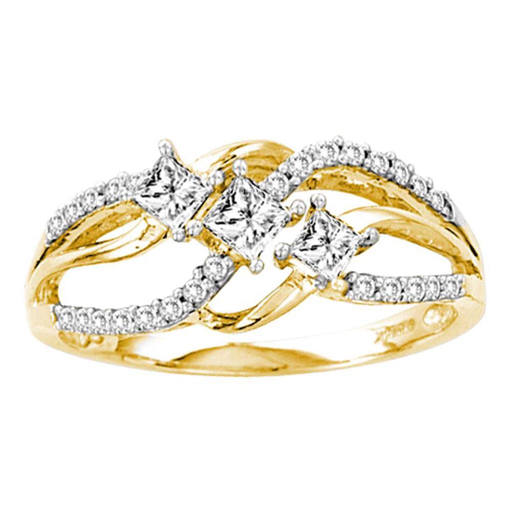 14k Yellow Gold Princess Diamond 3-stone Bridal Engagement Ring 1/2 Cttw
