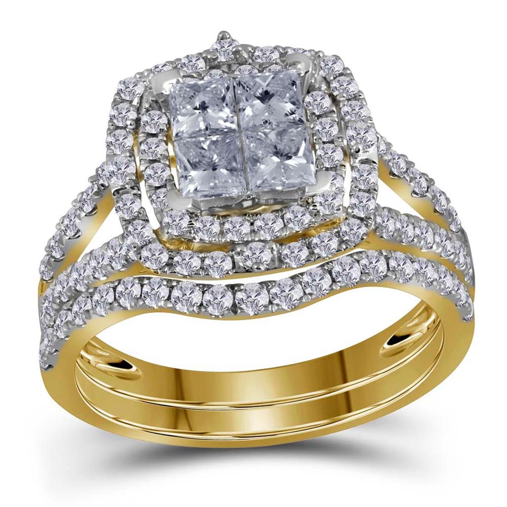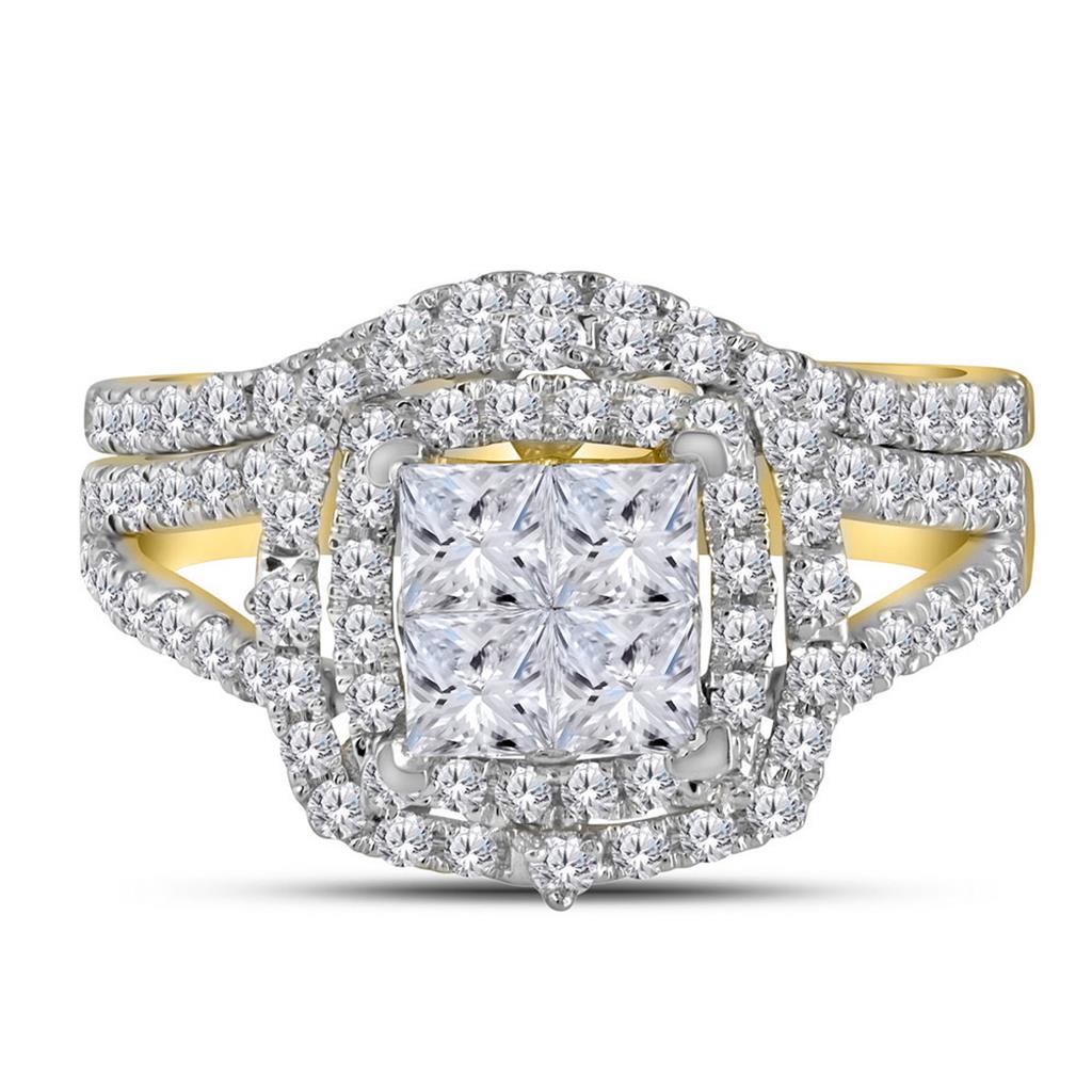 14k Yellow Gold Princess Diamond Bridal Wedding Ring Set 1-1/2 Cttw