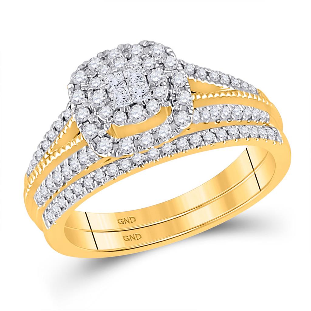 14k Yellow Gold Princess Diamond Bridal Wedding Ring Set 1/2 Cttw