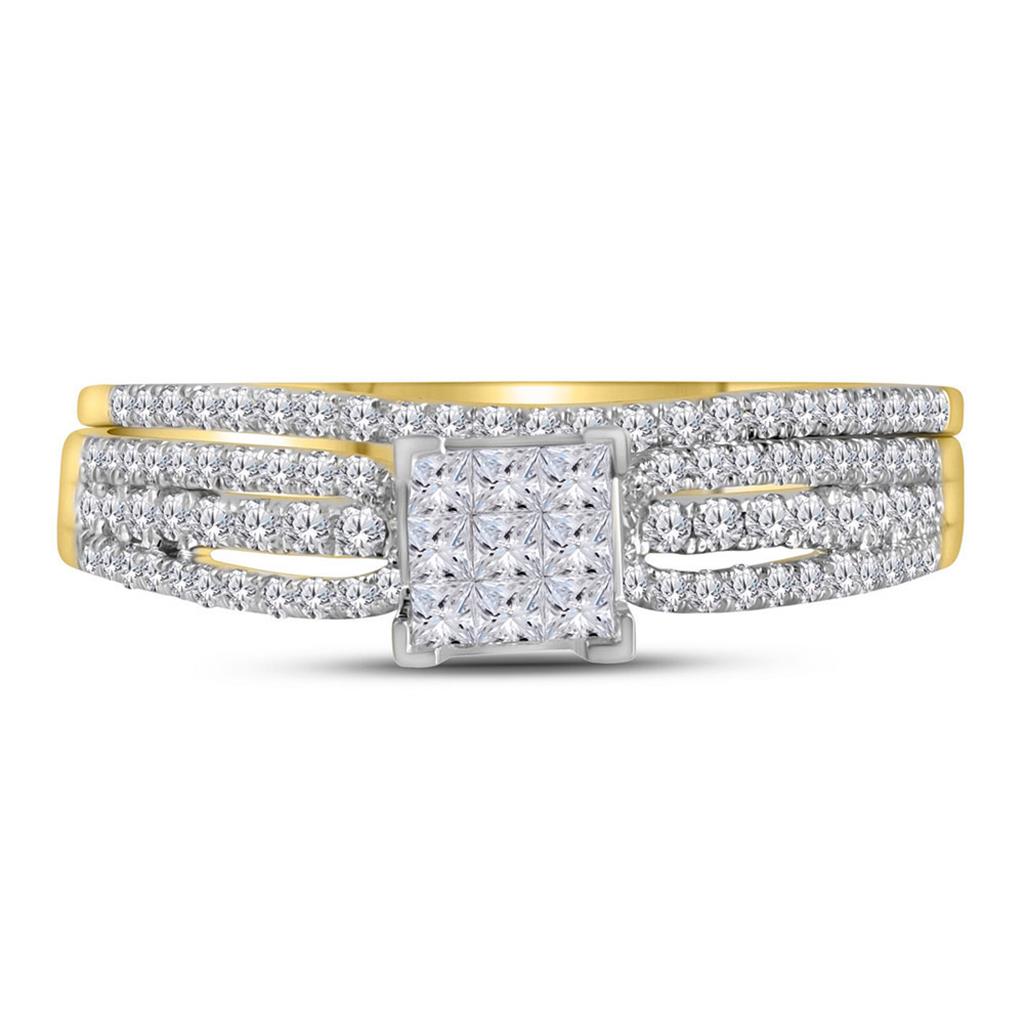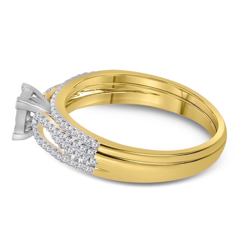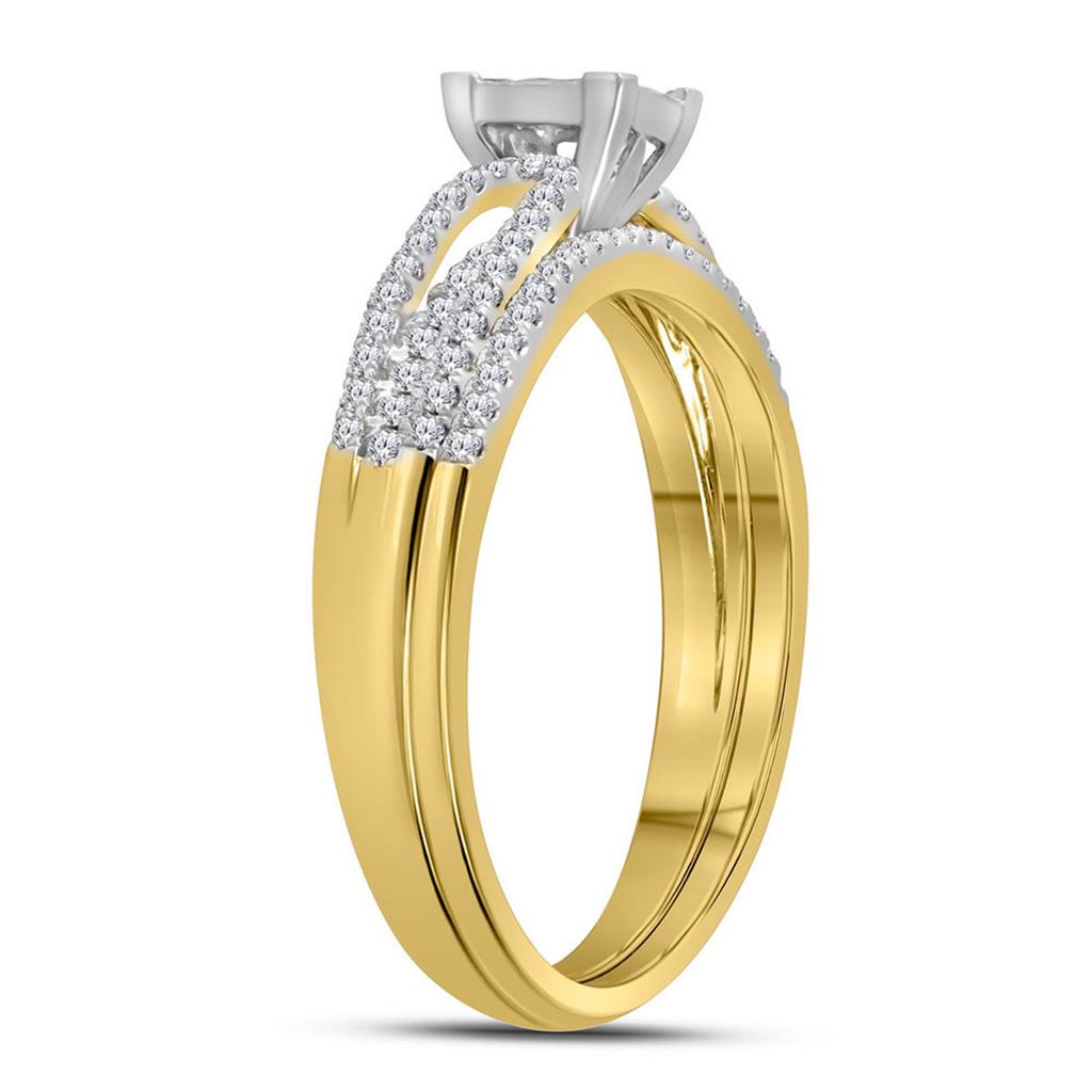 14k Yellow Gold Princess Diamond Bridal Wedding Ring Set 1/2 Cttw