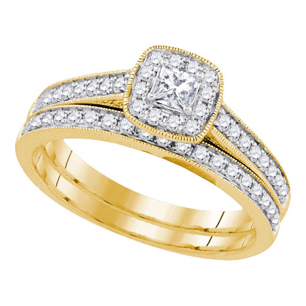 14k Yellow Gold Princess Diamond Bridal Wedding Ring Set 1/2 Cttw