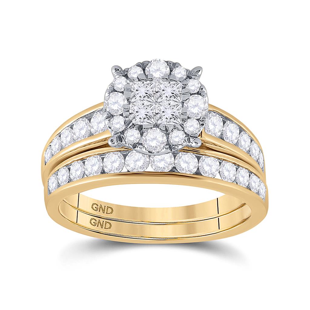 14k Yellow Gold Princess Diamond Bridal Wedding Ring Set 1-3/8 Cttw