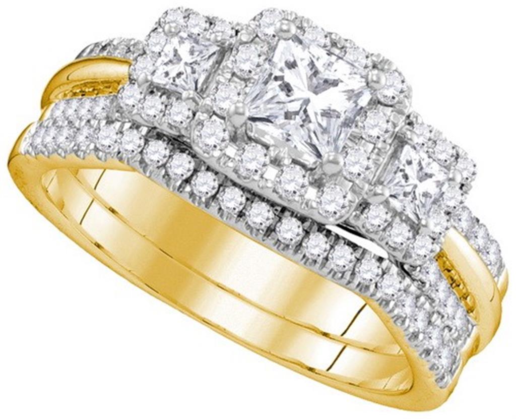 14k Yellow Gold Princess Diamond Bridal Wedding Ring Set 1 (Certified)
