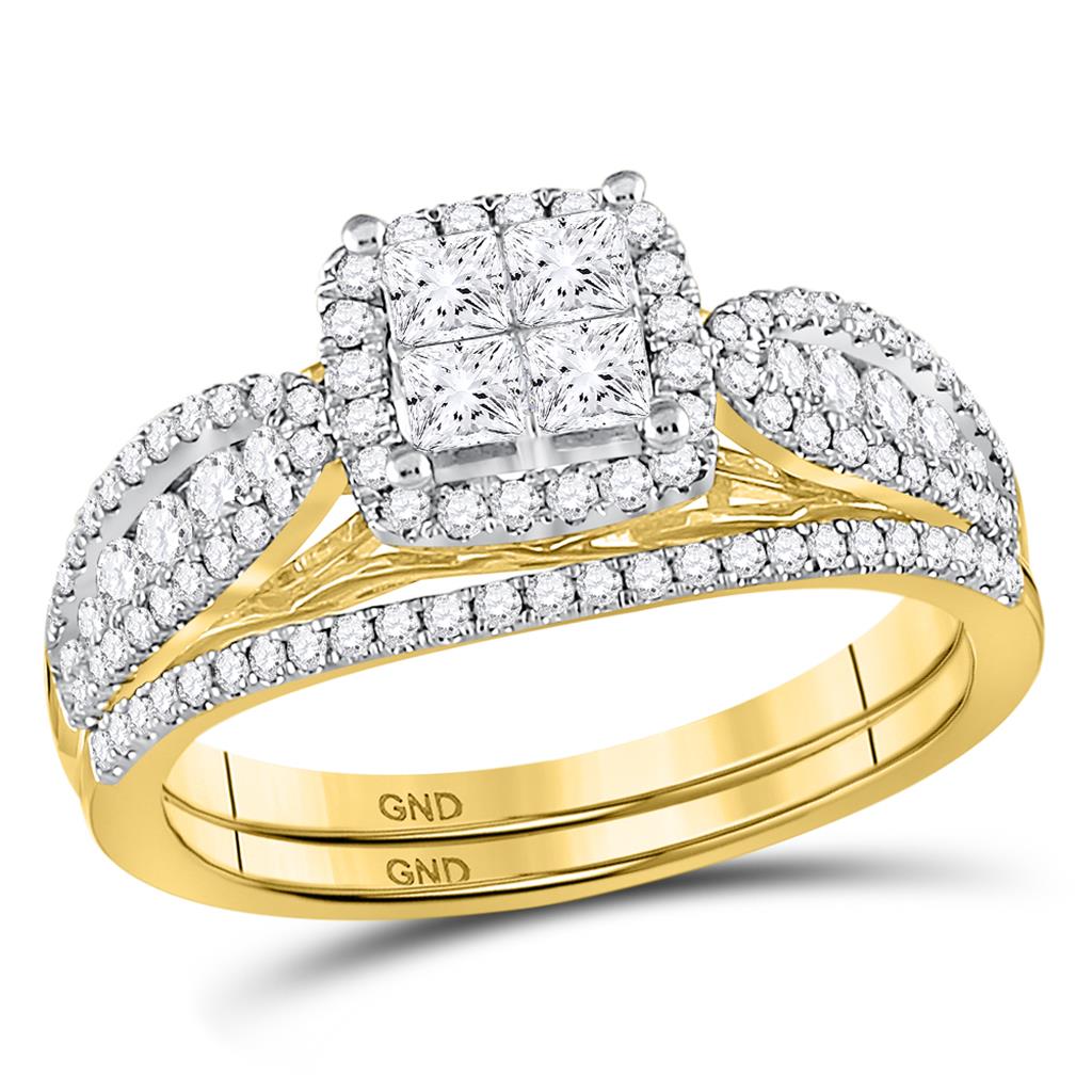 14k Yellow Gold Princess Diamond Bridal Wedding Ring Set 1 Cttw