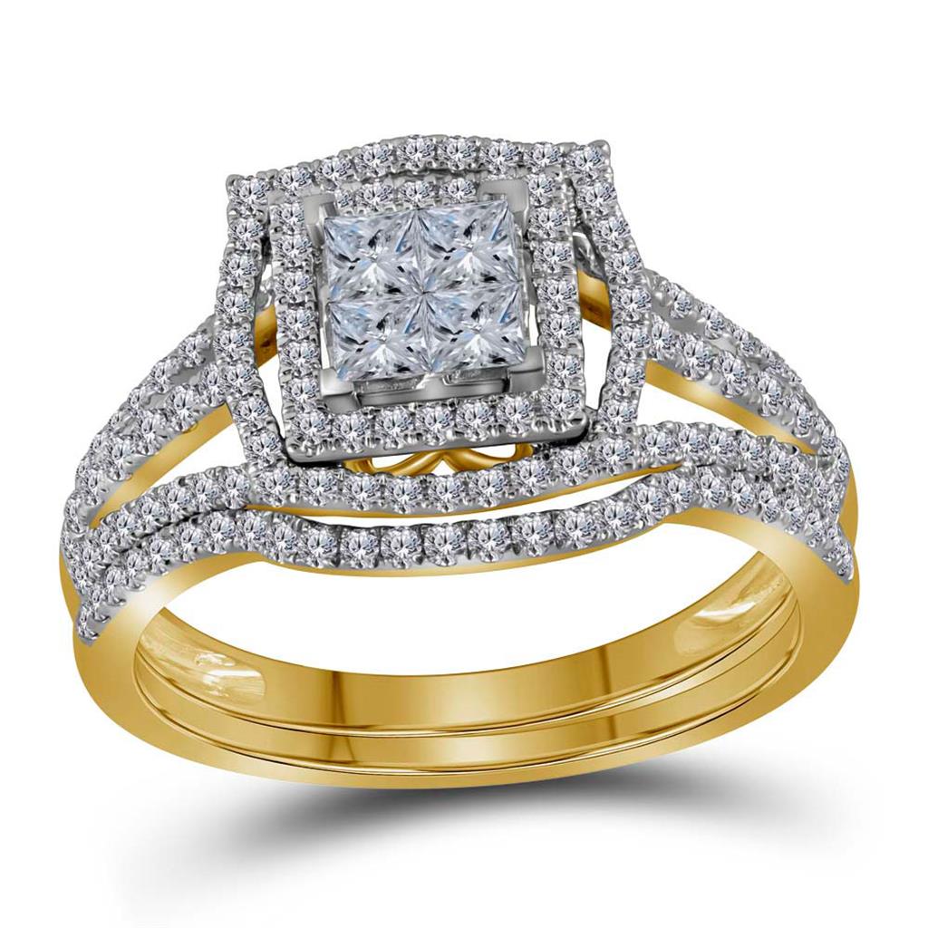 14k Yellow Gold Princess Diamond Bridal Wedding Ring Set 1 Cttw