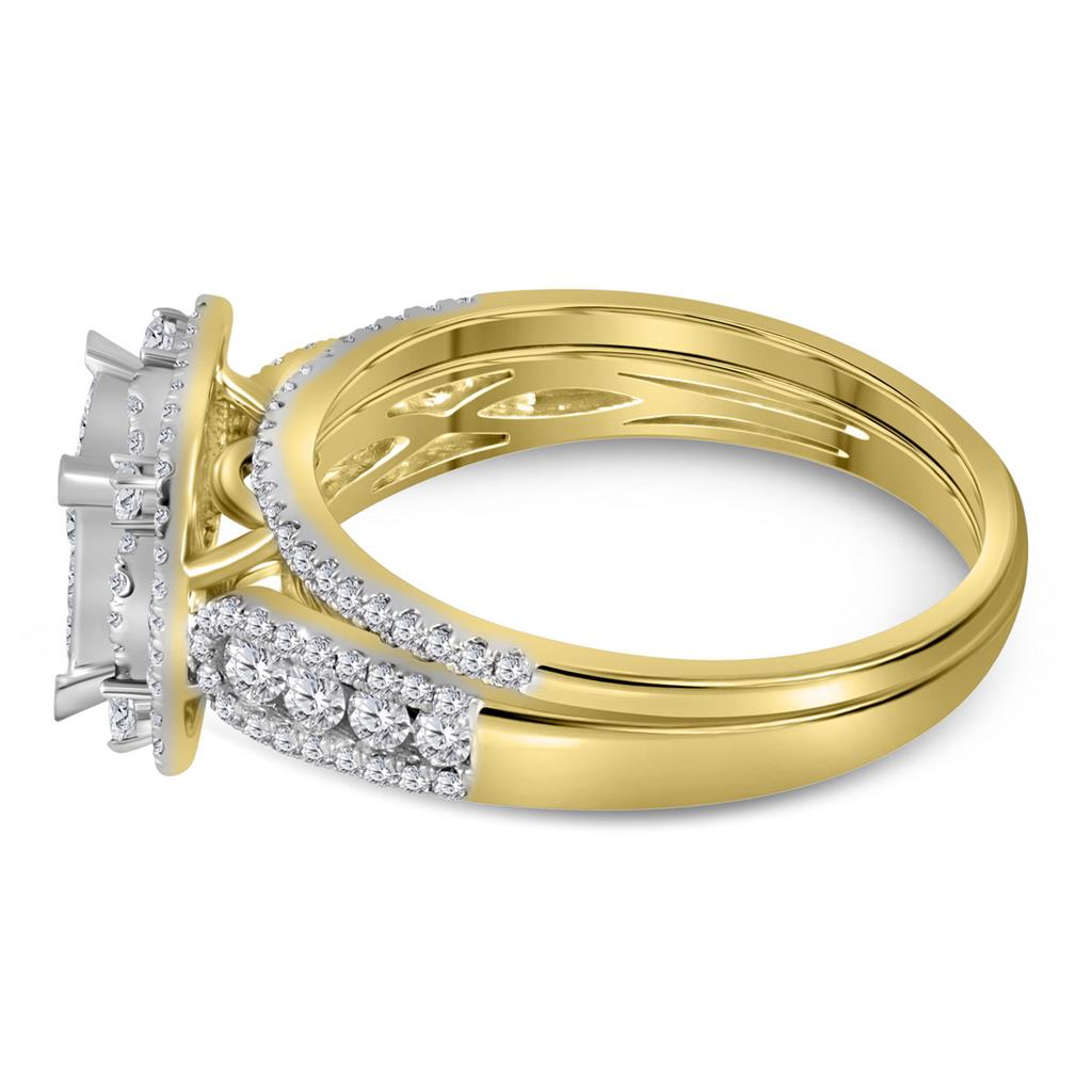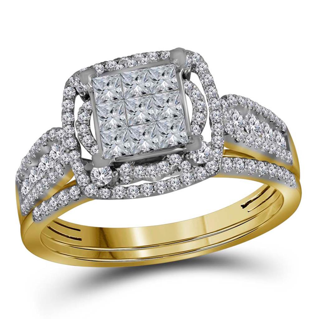14k Yellow Gold Princess Diamond Bridal Wedding Ring Set 1 Cttw