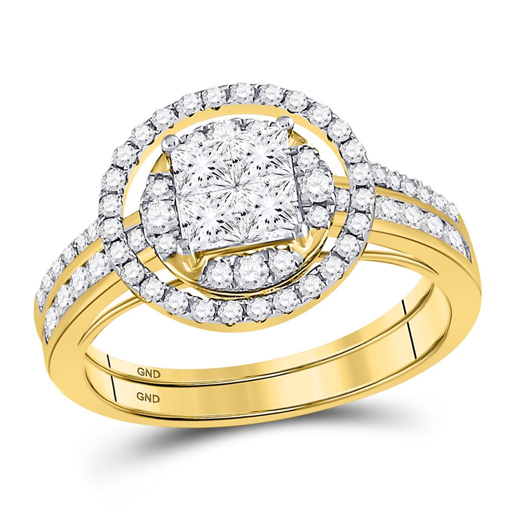 14k Yellow Gold Princess Diamond Bridal Wedding Ring Set 1 Cttw