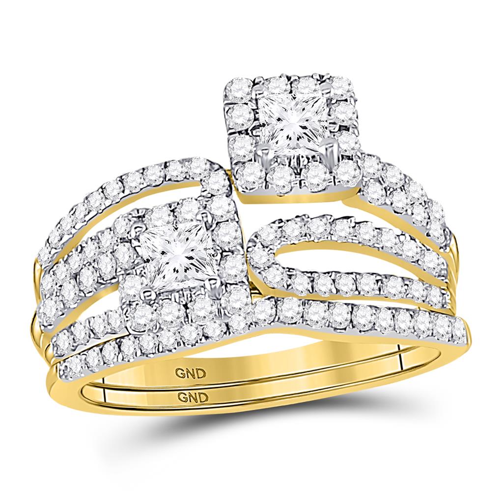 14k Yellow Gold Princess Diamond Bridal Wedding Ring Set 1 Cttw