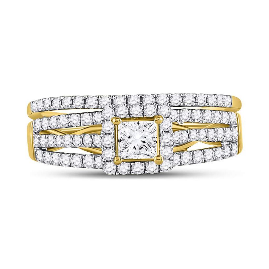 14k Yellow Gold Princess Diamond Bridal Wedding Ring Set 1 Cttw