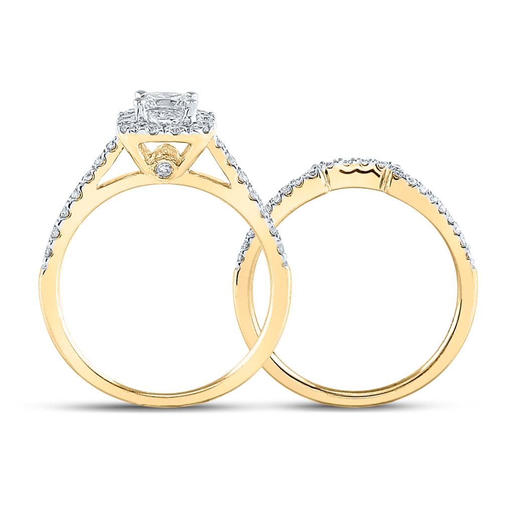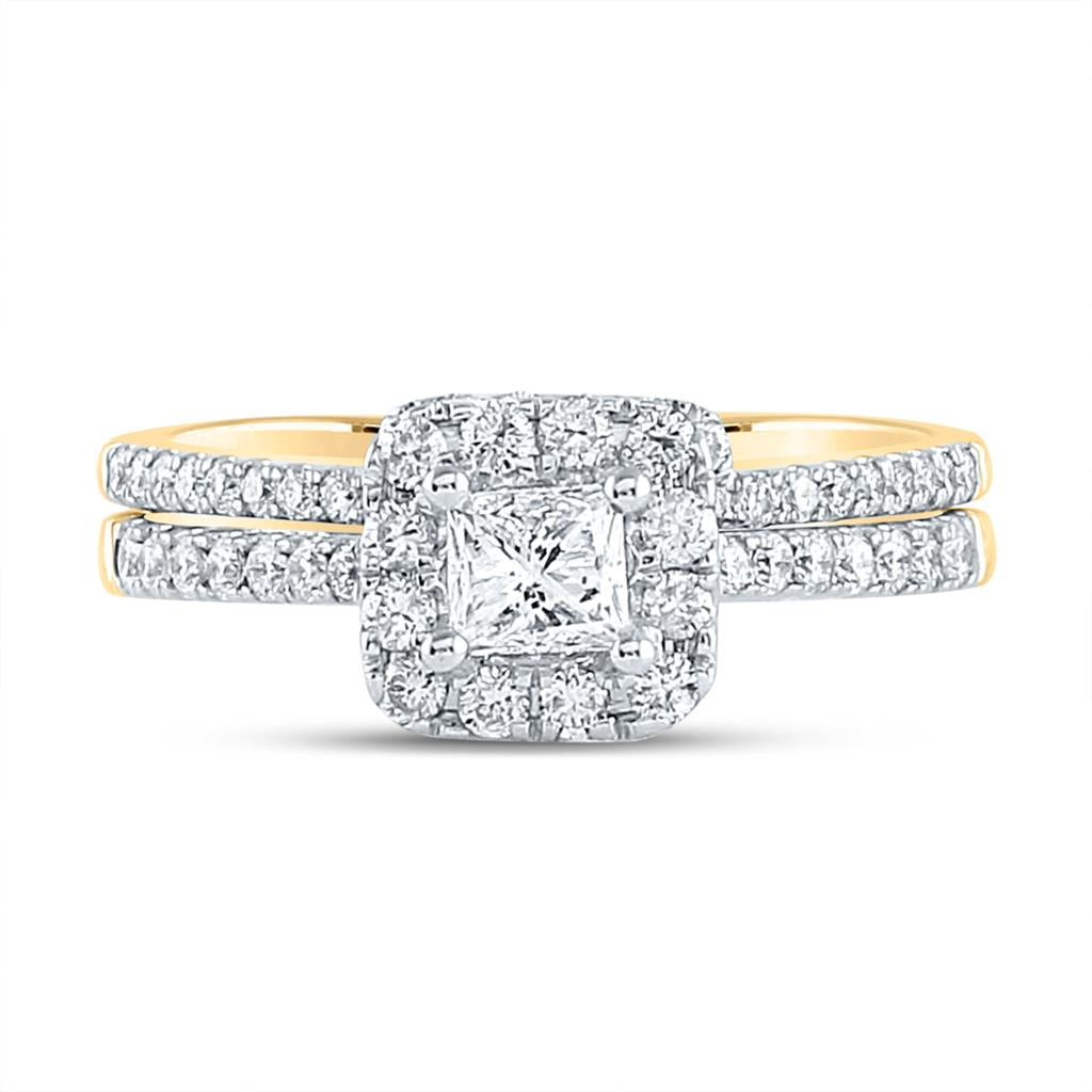 14k Yellow Gold Princess Diamond Bridal Wedding Ring Set 1 Cttw