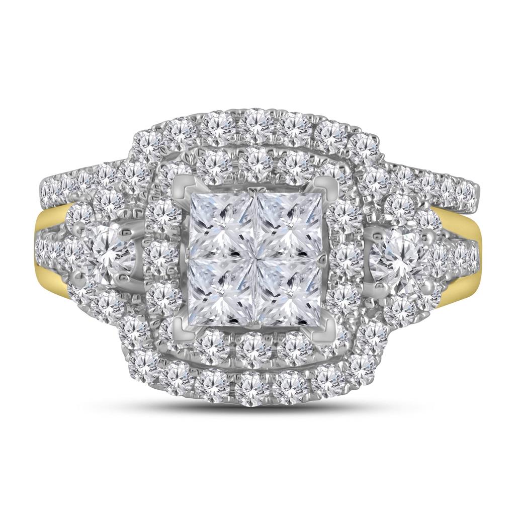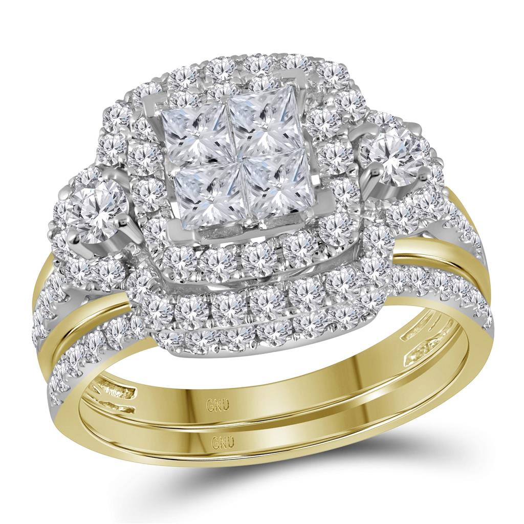 14k Yellow Gold Princess Diamond Bridal Wedding Ring Set 2 Cttw