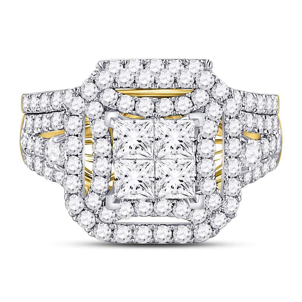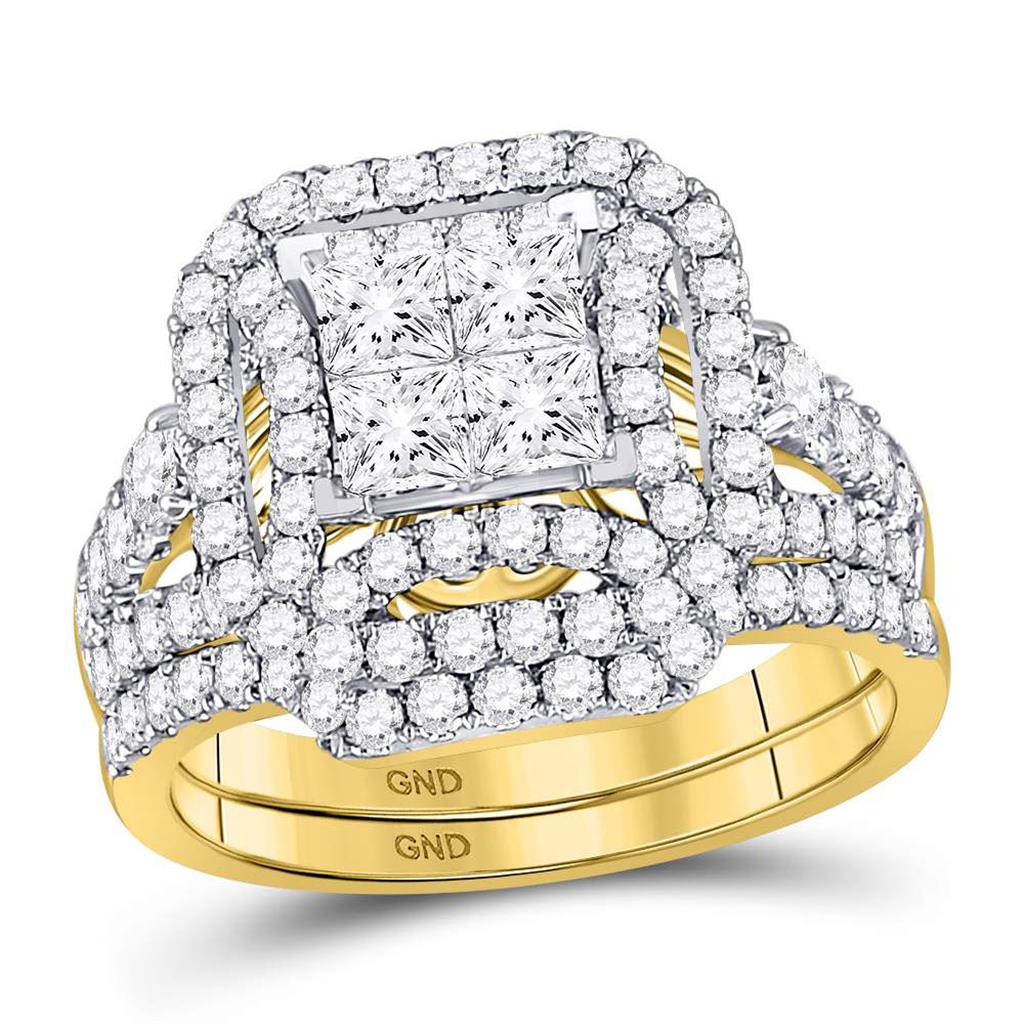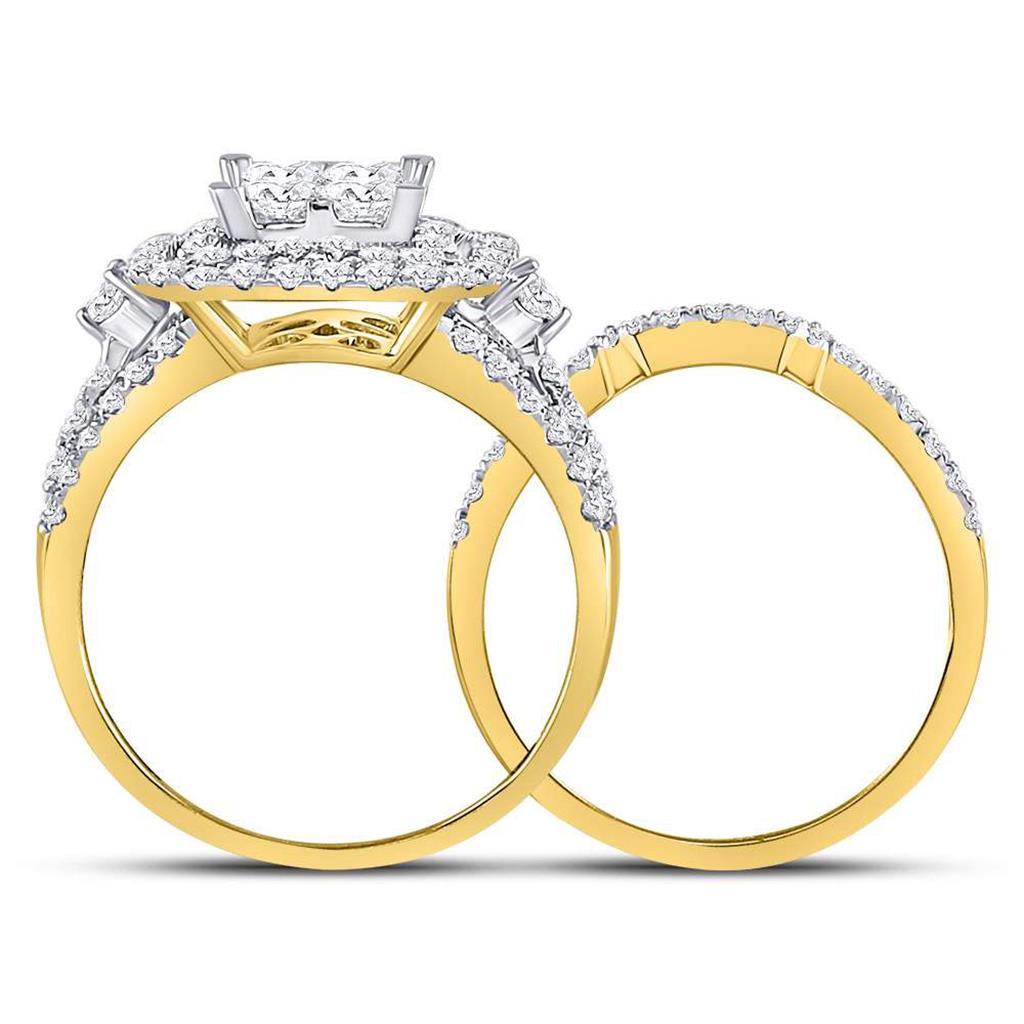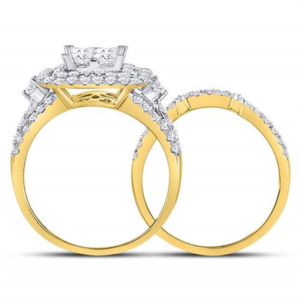 14k Yellow Gold Princess Diamond Bridal Wedding Ring Set 2 Cttw