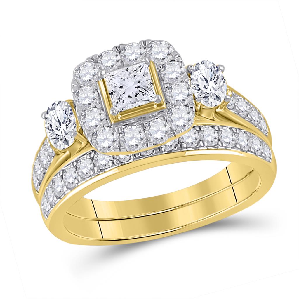 14k Yellow Gold Princess Diamond Bridal Wedding Ring Set 2 Cttw (Certified)