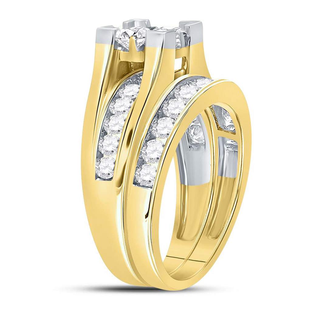 14k Yellow Gold Princess Diamond Bridal Wedding Ring Set 2 Cttw