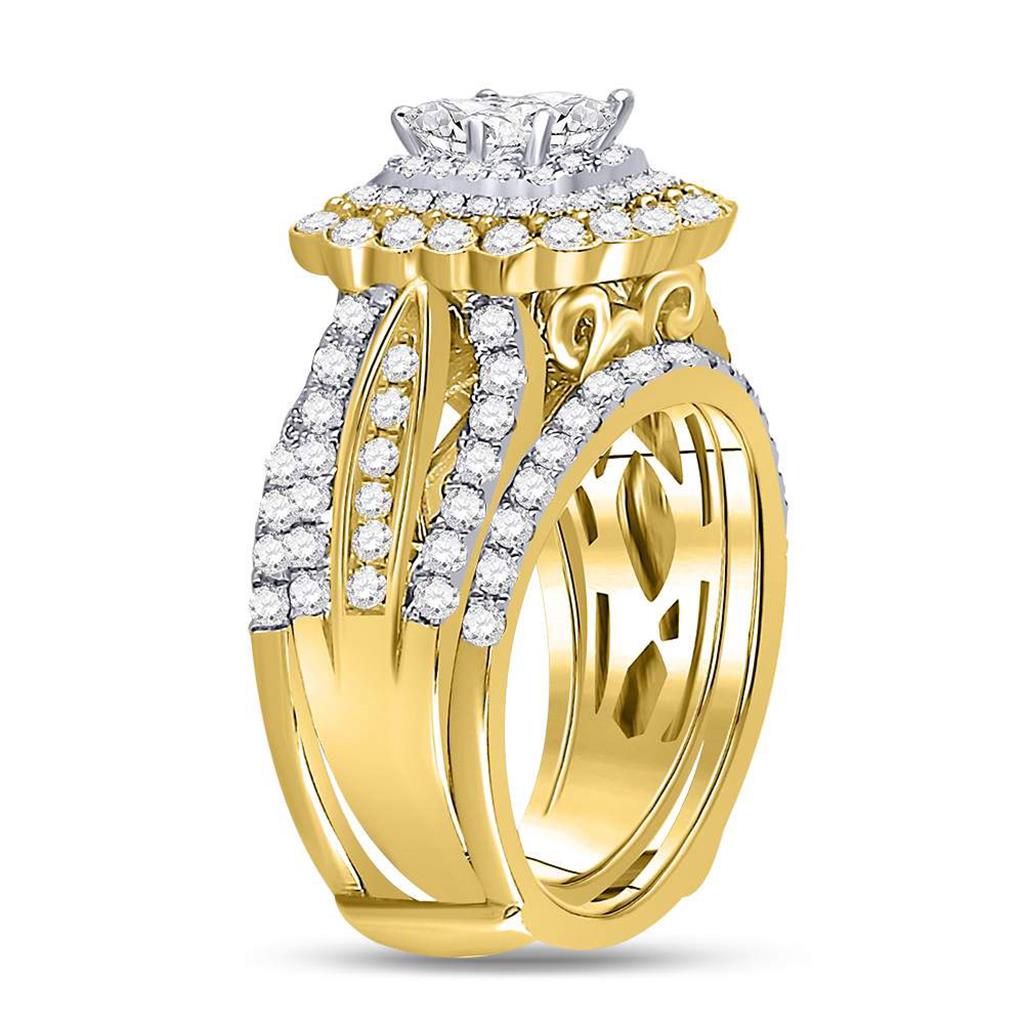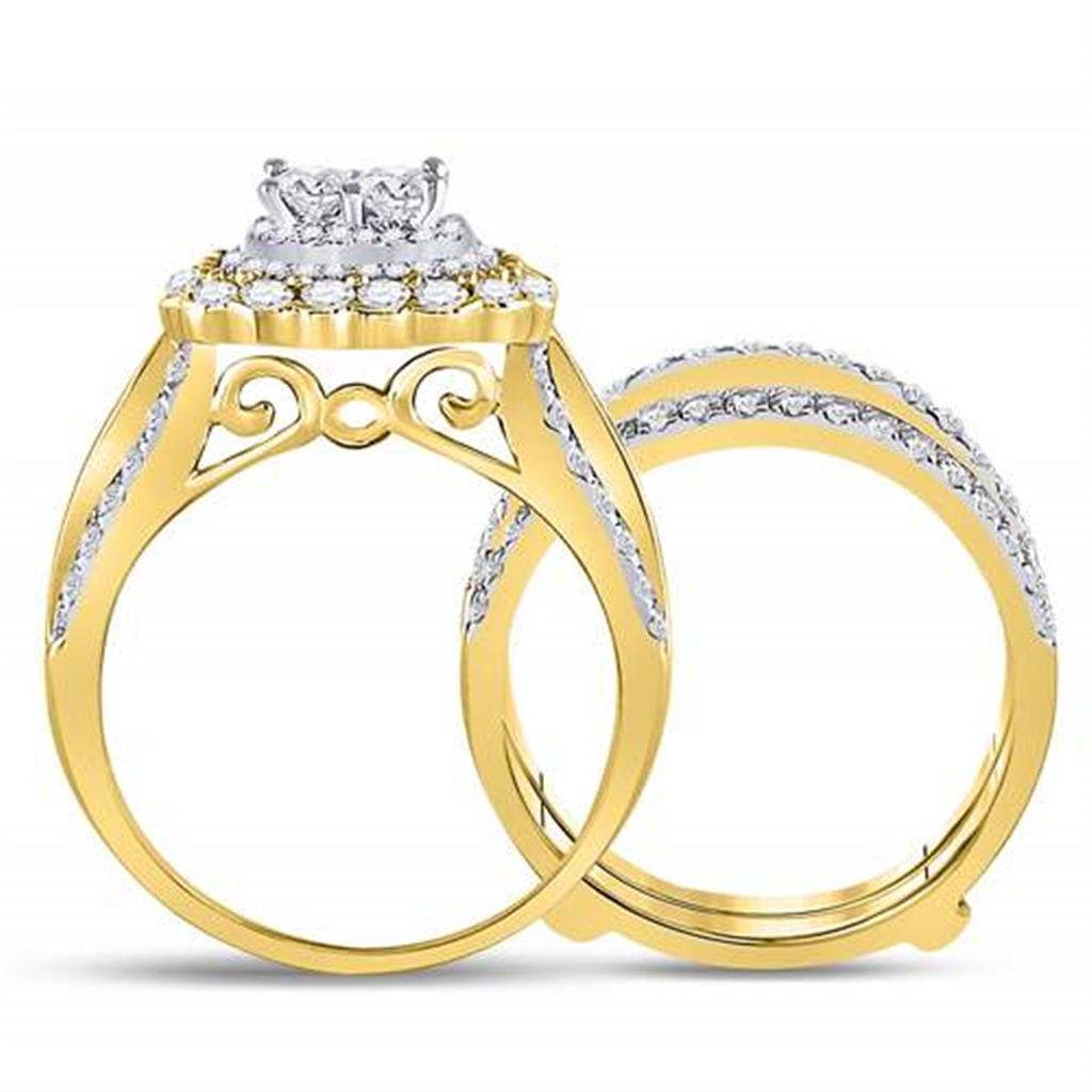14k Yellow Gold Princess Diamond Bridal Wedding Ring Set 2 Cttw