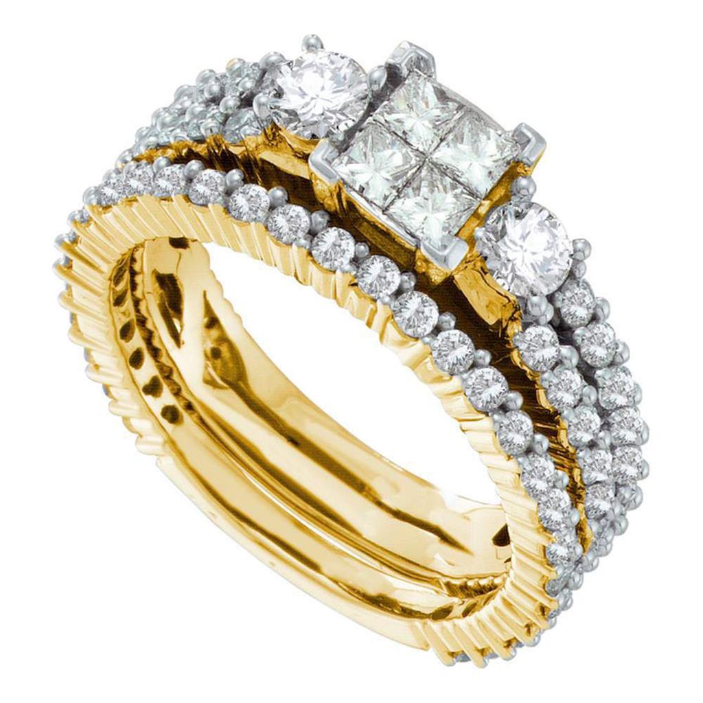 14k Yellow Gold Princess Diamond Bridal Wedding Ring Set 2 Cttw