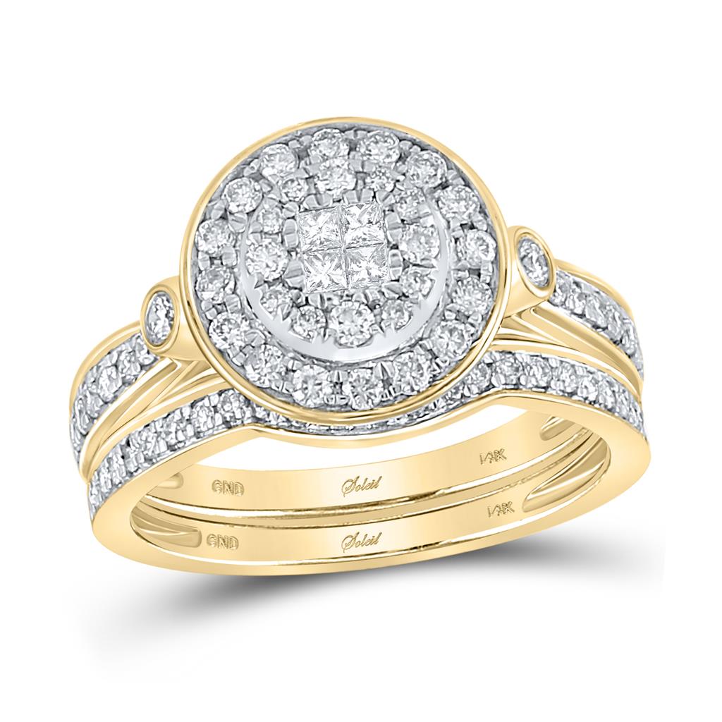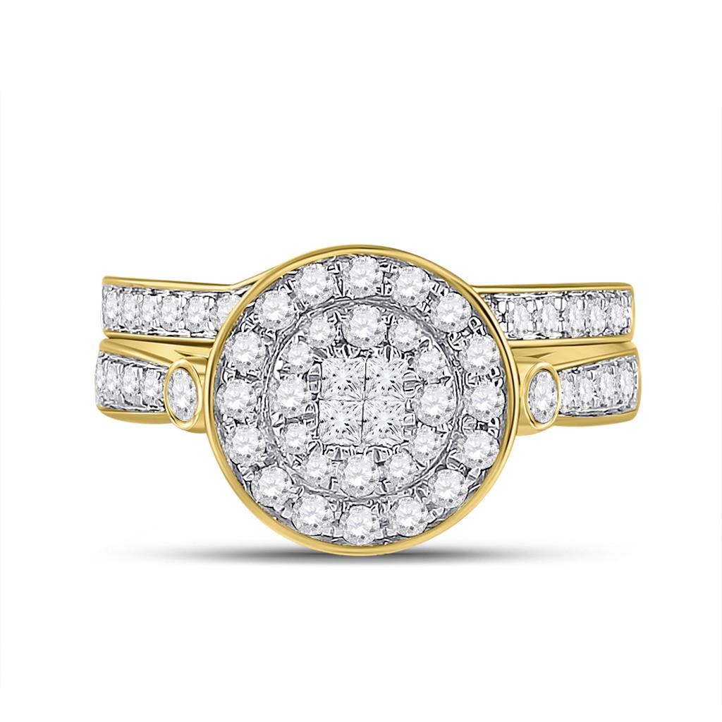 14k Yellow Gold Princess Diamond Bridal Wedding Ring Set 3/4 Cttw