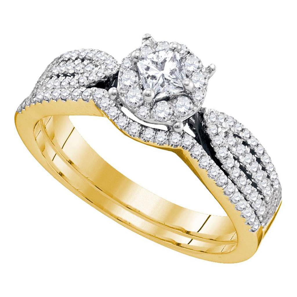 14k Yellow Gold Princess Diamond Bridal Wedding Ring Set 3/4 Cttw