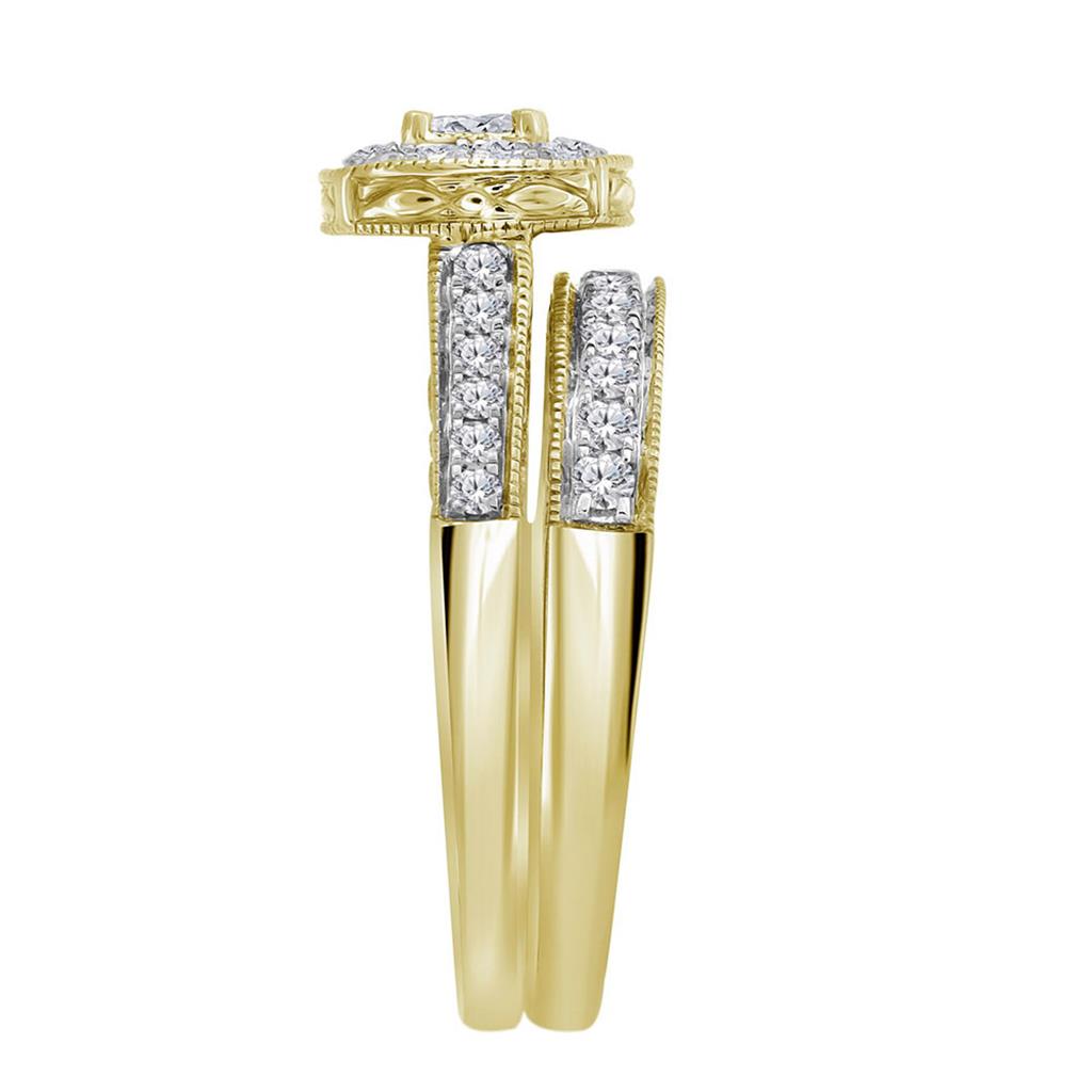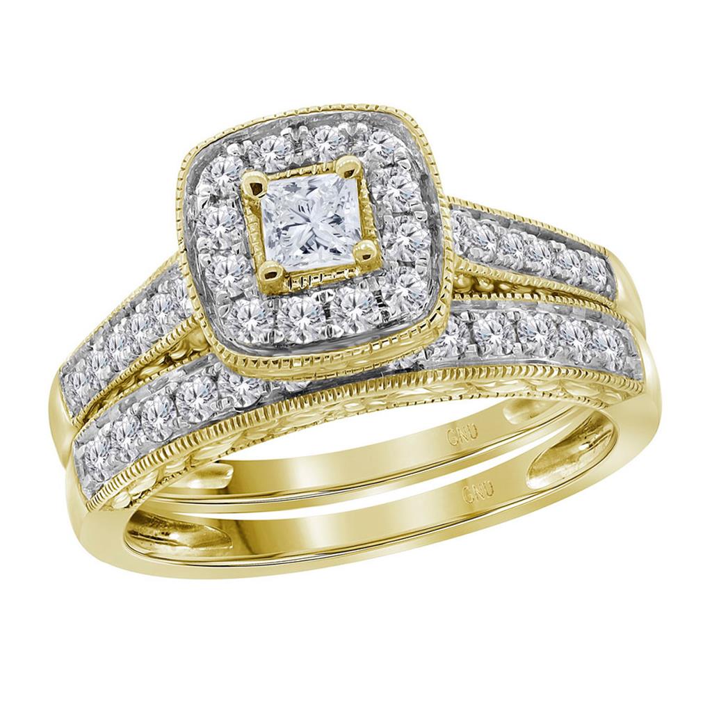 14k Yellow Gold Princess Diamond Bridal Wedding Ring Set 3/4 Cttw