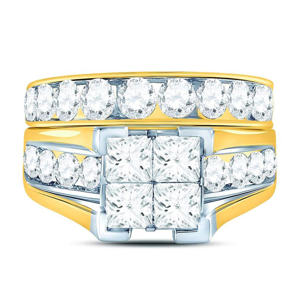 14k Yellow Gold Princess Diamond Bridal Wedding Ring Set 4 Cttw