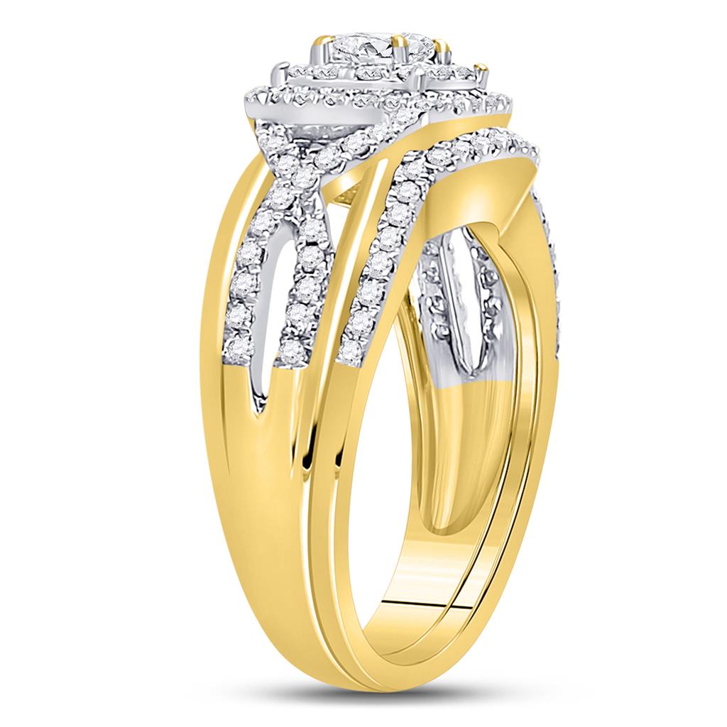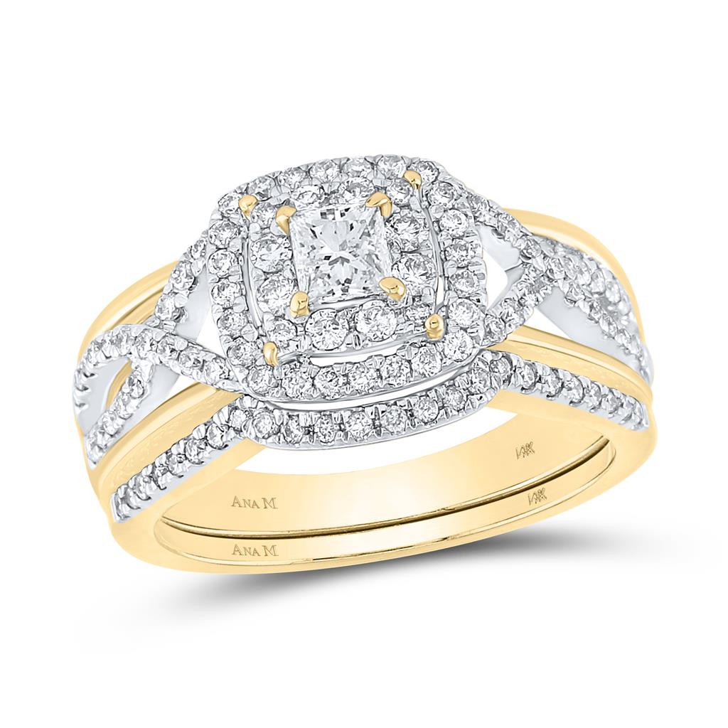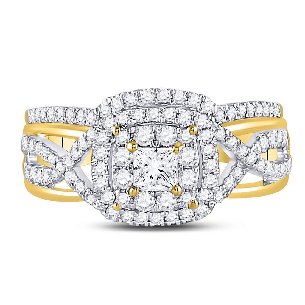 14k Yellow Gold Princess Diamond Bridal Wedding Ring Set 7/8 Cttw (Certified)