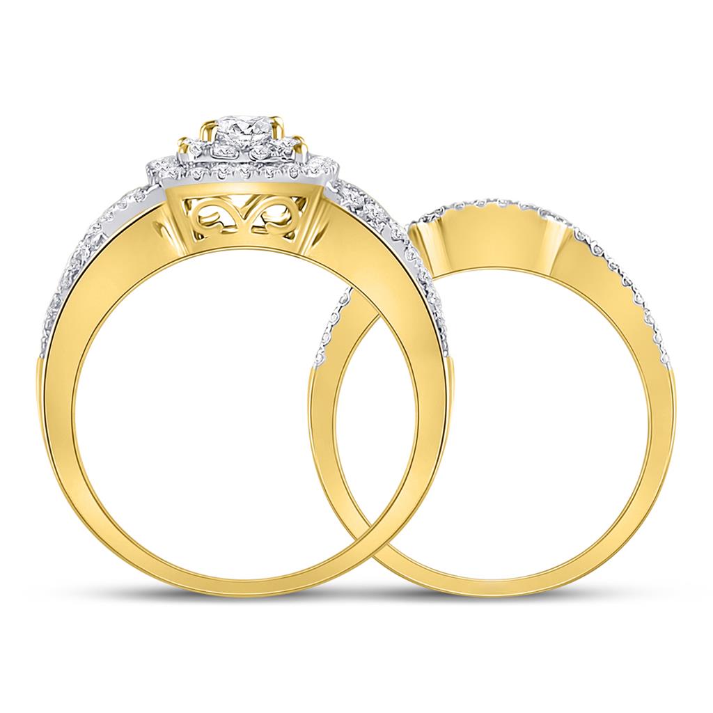 This exquisite bridal wedding ring set is made of 14kt yellow gold with a weight of approximately 6.732 grams. Certified and boasting a total gemstone carat weight of 7/8, this...