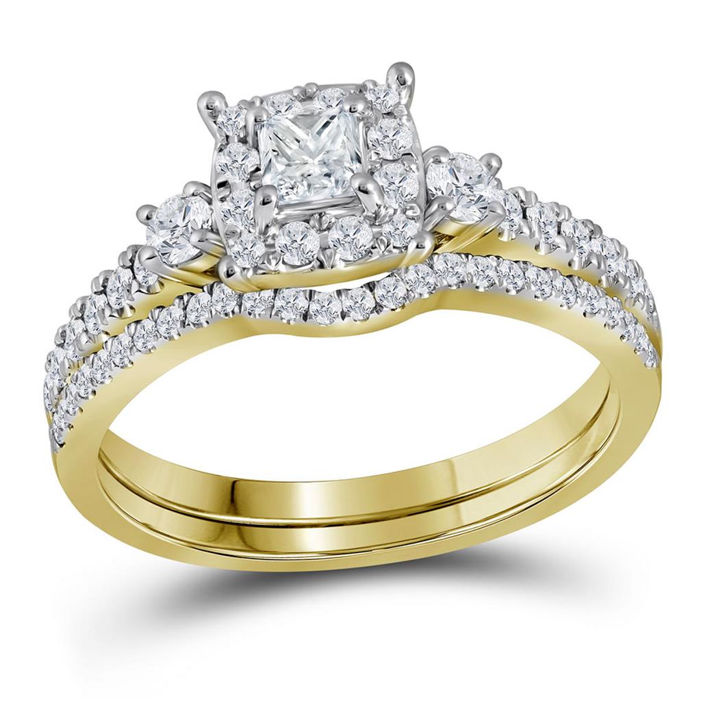 14k Yellow Gold Princess Diamond Bridal Wedding Ring Set 7/8 Cttw (Certified)