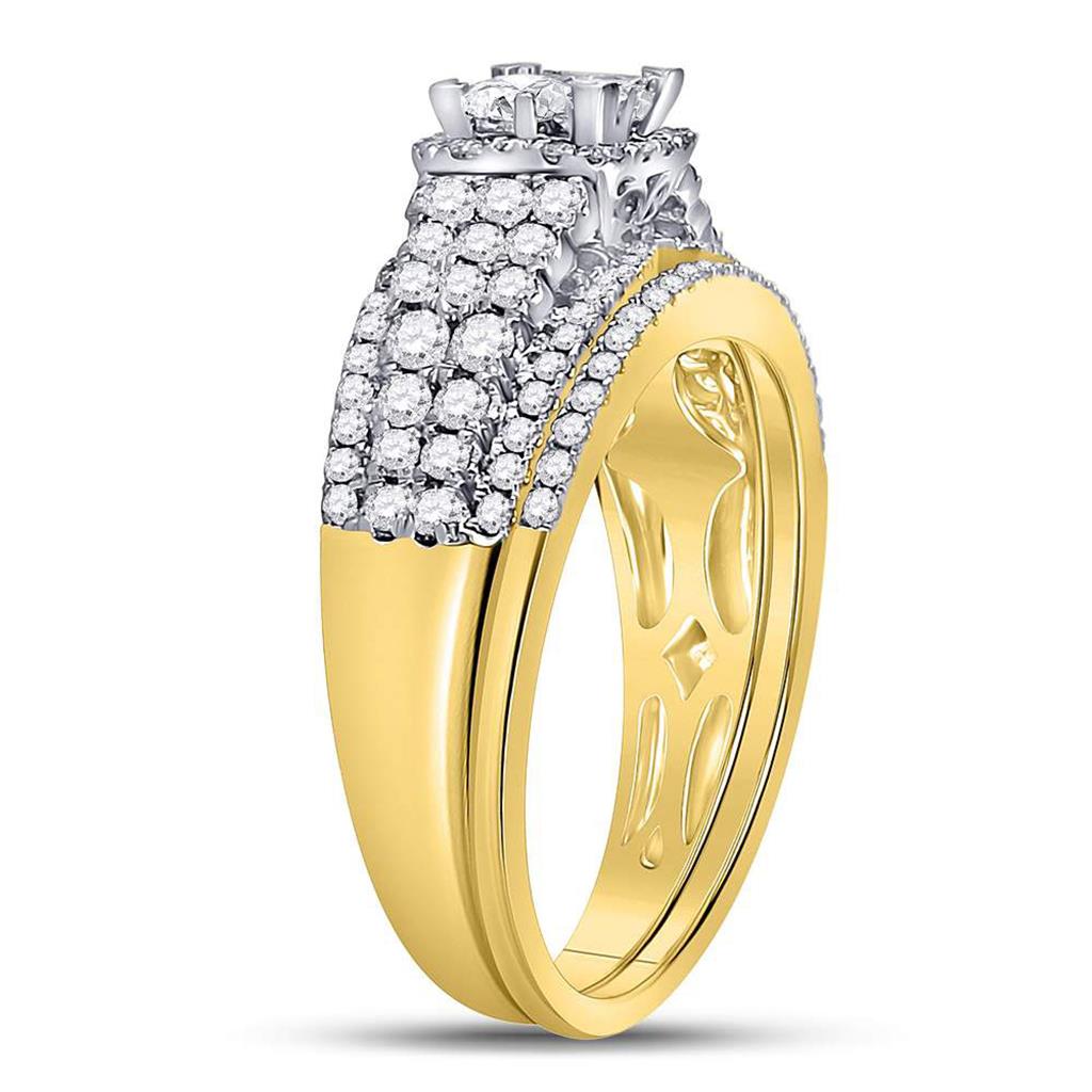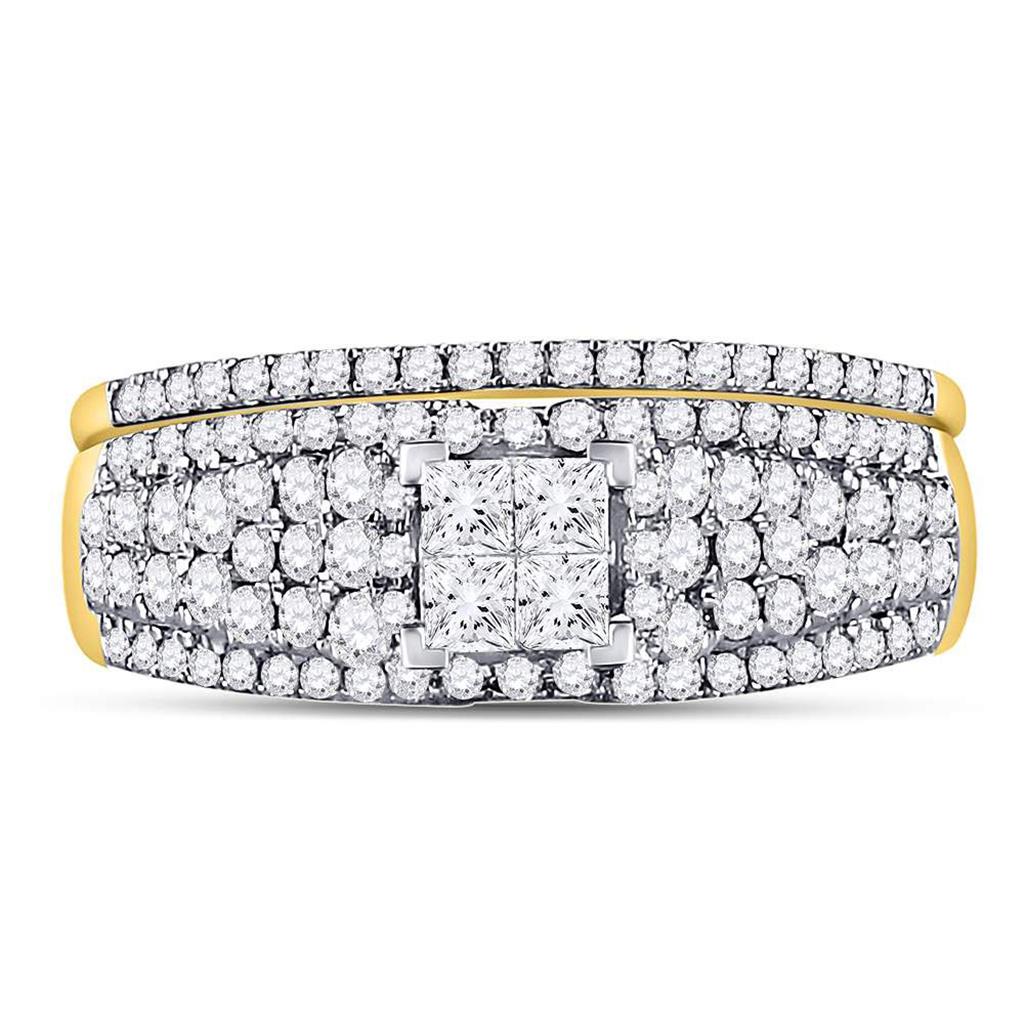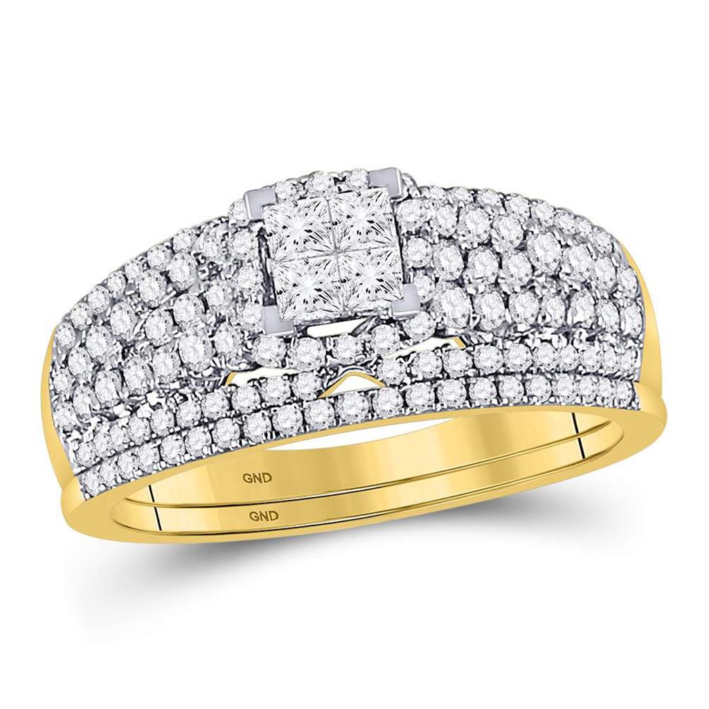 14k Yellow Gold Princess Diamond Cluster Bridal Wedding Ring Set 1 Cttw
