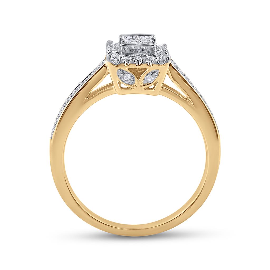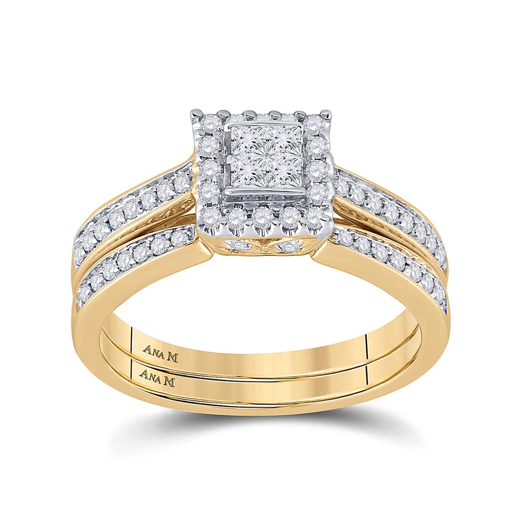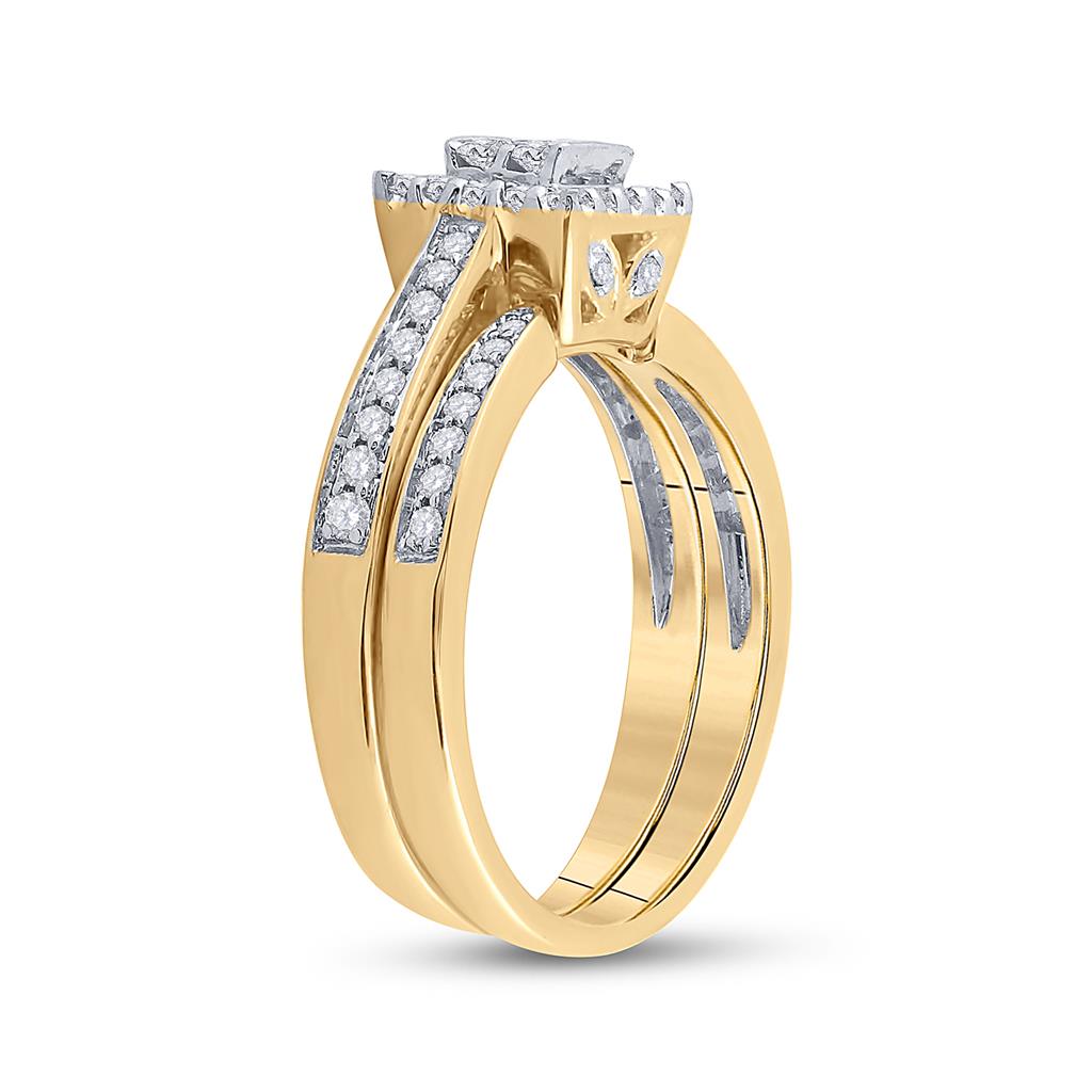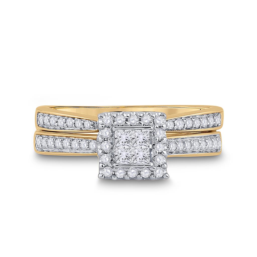 14k Yellow Gold Princess Diamond Halo Bridal Wedding Ring Set 1/2 Cttw