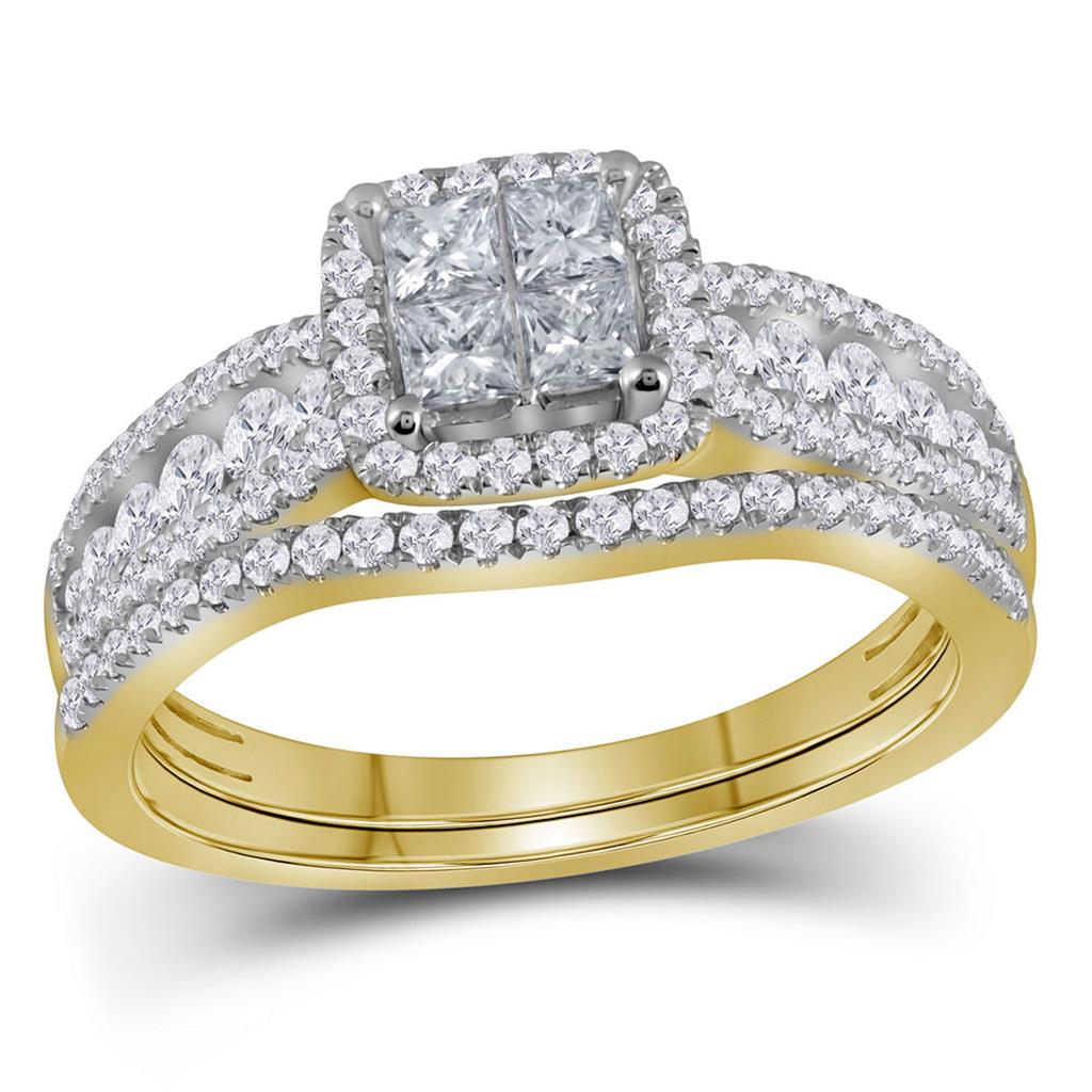 14k Yellow Gold Princess Diamond Halo Bridal Wedding Ring Set 1 Cttw
