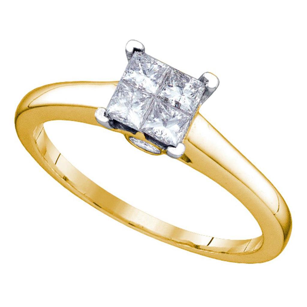 14k Yellow Gold Princess Diamond Square Bridal Engagement Ring 1/2 Cttw