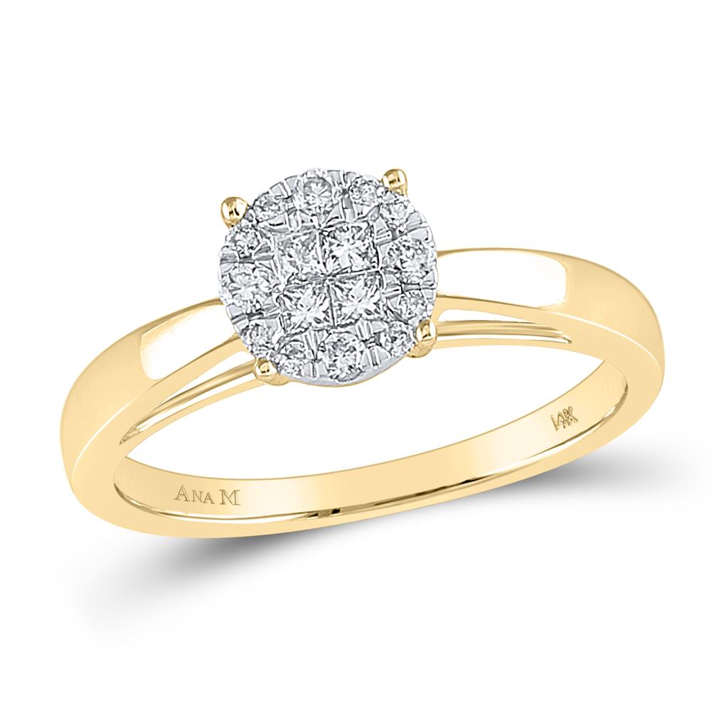 14k Yellow Gold Princess Round Diamond Bridal Engagement Ring 1/4 Cttw