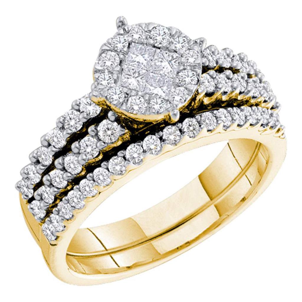 14k Yellow Gold Princess Round Diamond Bridal Wedding Ring Set 1 Cttw