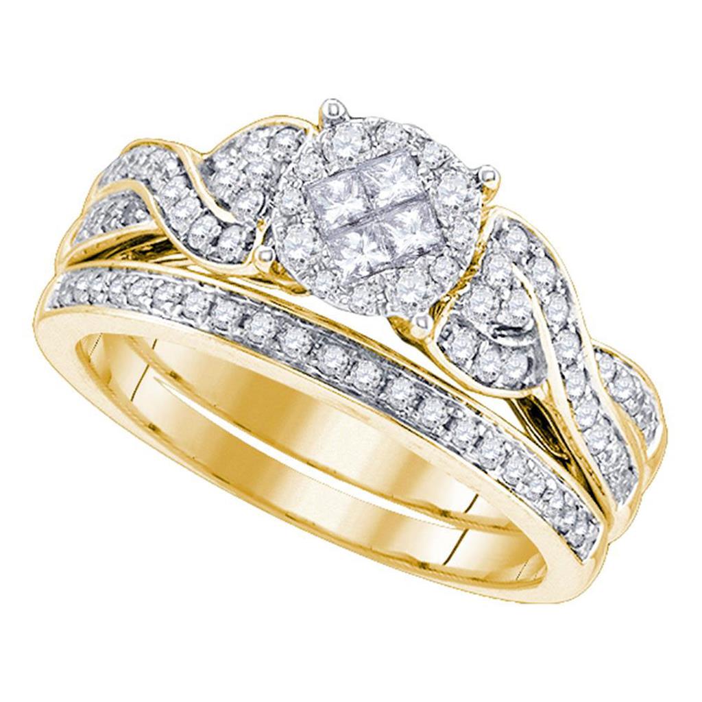 14k Yellow Gold Princess Round Diamond Bridal Wedding Ring Set 5/8 Cttw