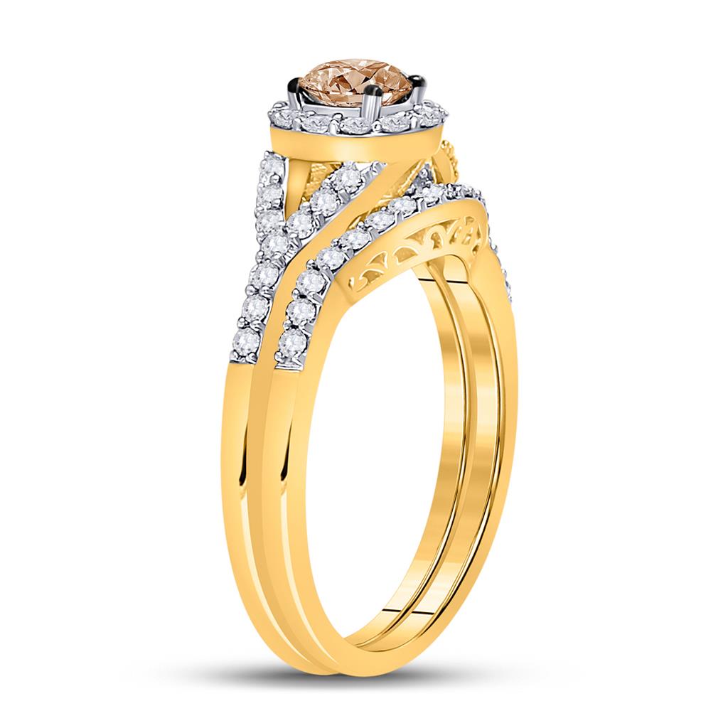 14k Yellow Gold Round Brown Diamond Bridal Wedding Ring Set 1 Cttw