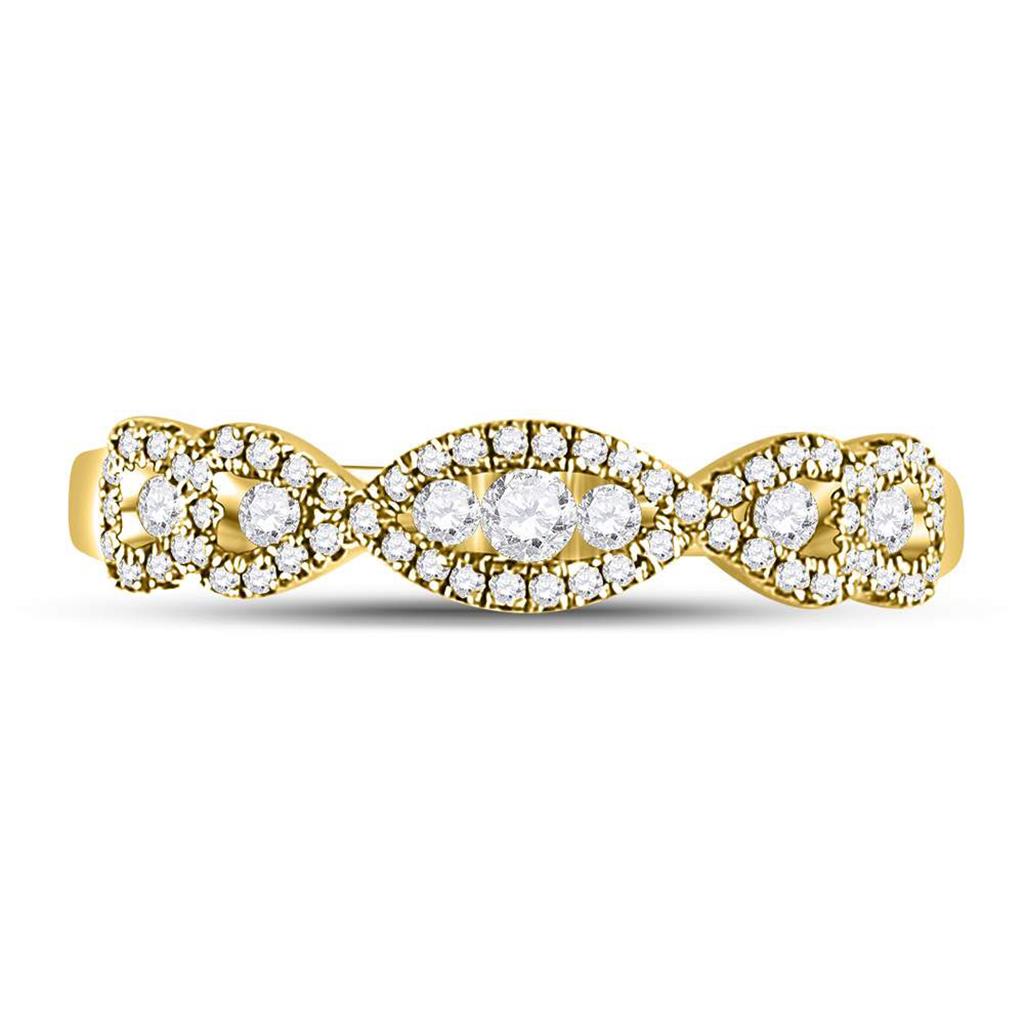 14k Yellow Gold Round Diamond 3-Stone Anniversary Band Ring 3/8 Ctw