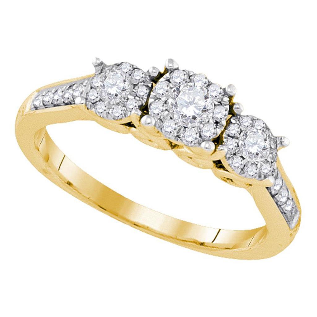 14k Yellow Gold Round Diamond 3-stone Bridal Engagement Ring 1/2 Cttw