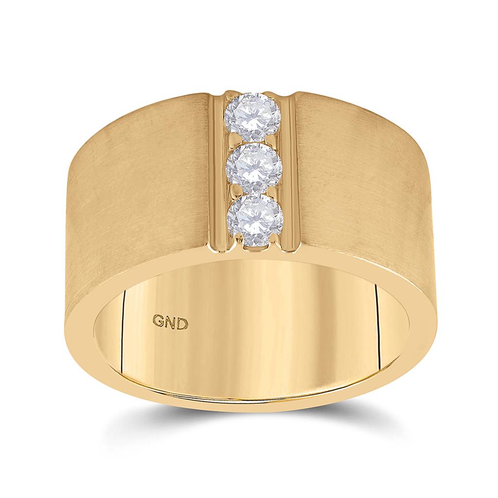 14k Yellow Gold Round Diamond 3-stone Matte Wedding Band 1/2 Cttw