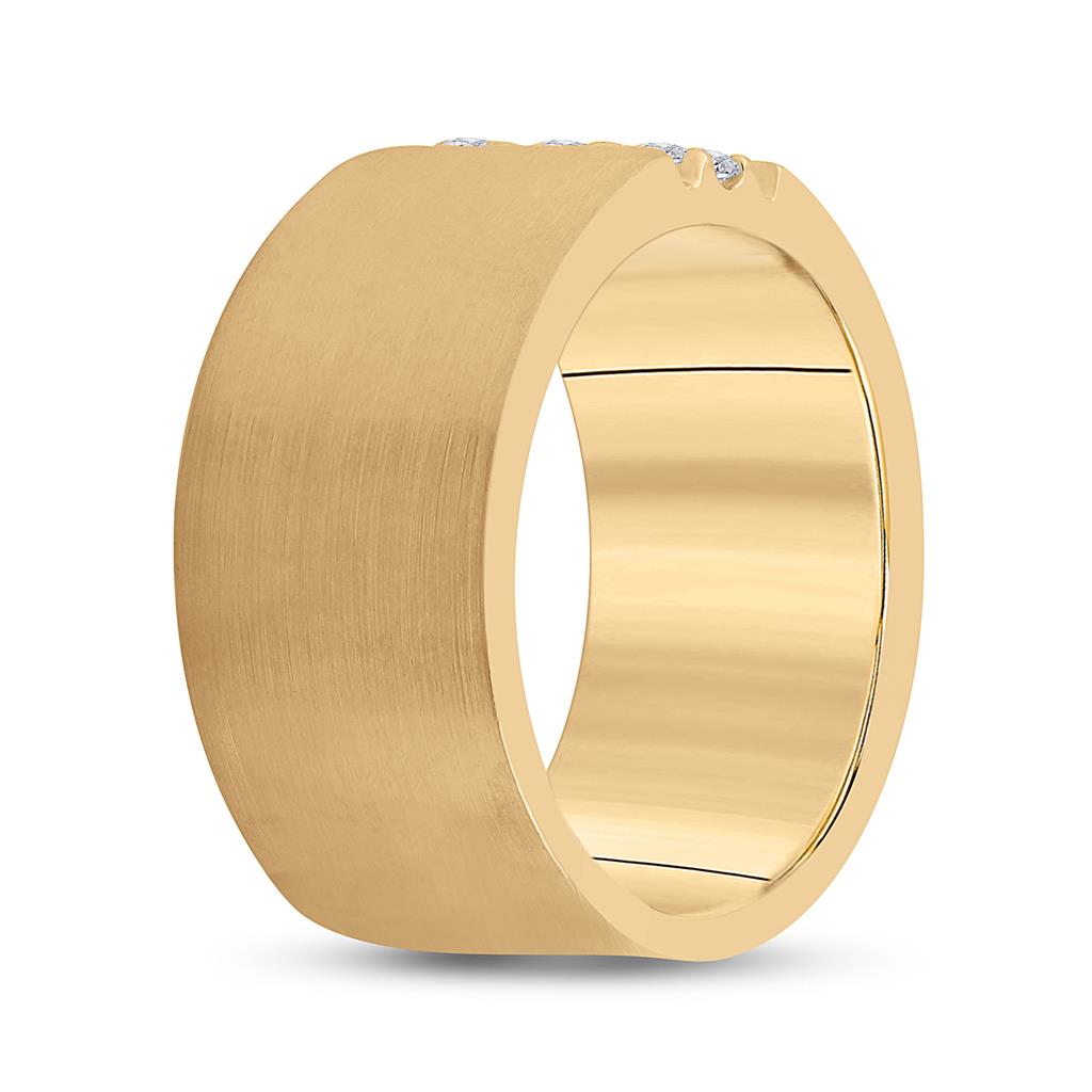 Looking for a stunning wedding band that will stay timeless for years to come? The 14k Yellow Gold Round Diamond 3-stone Matte Wedding Band 1/2 Cttw is a must-have. Crafted...