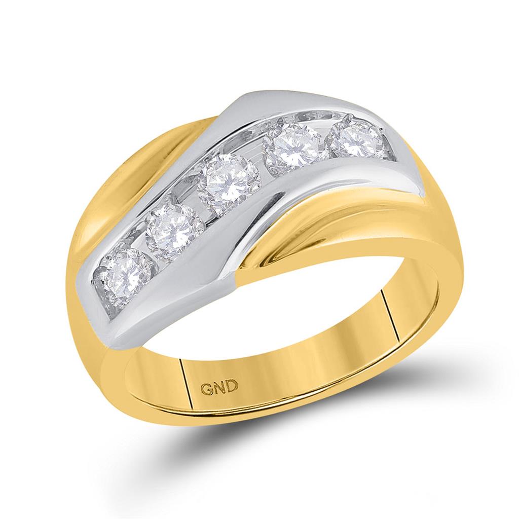 14k Yellow Gold Round Diamond 5-Stone Band Ring 1 Cttw