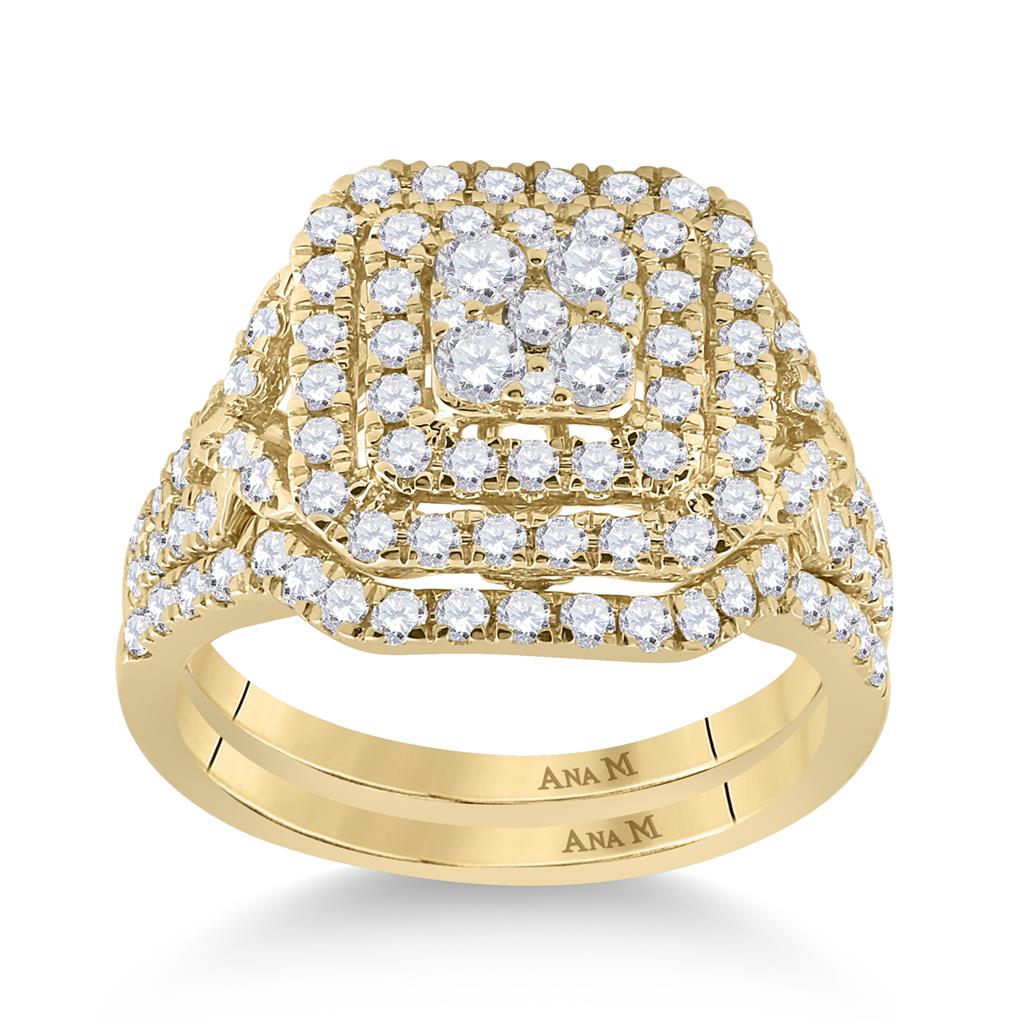 Introducing the stunning "14k Yellow Gold Round Diamond Bridal Wedding Ring Set 1-1/4 Cttw." This exquisite piece is crafted from 14kt yellow gold, weighing approximately 8.0006 grams. It features a...