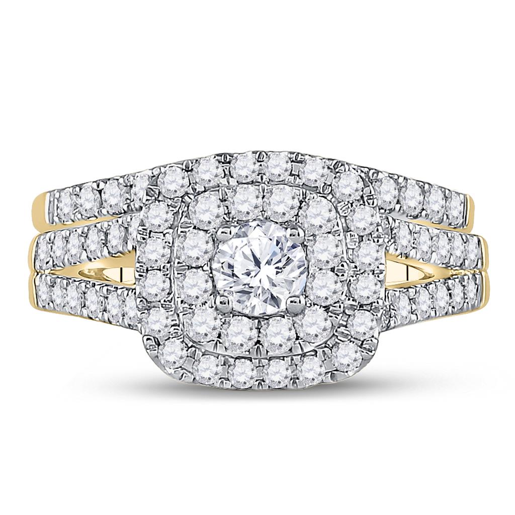 14k Yellow Gold Round Diamond Bridal Wedding Ring Set 1-1/4 Cttw (Certified)