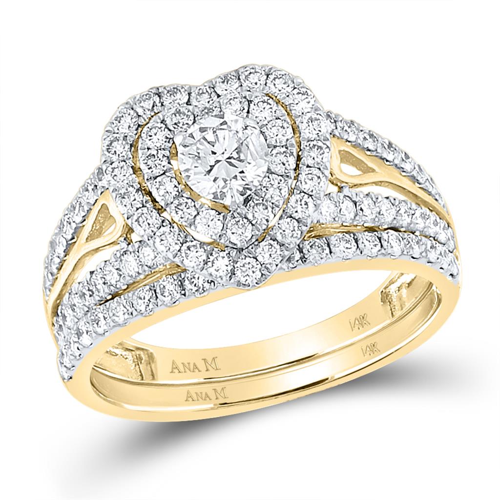 14k Yellow Gold Round Diamond Bridal Wedding Ring Set 1-1/5 Cttw (Certified)