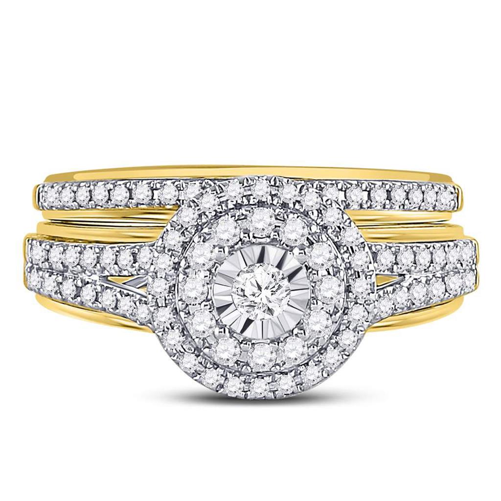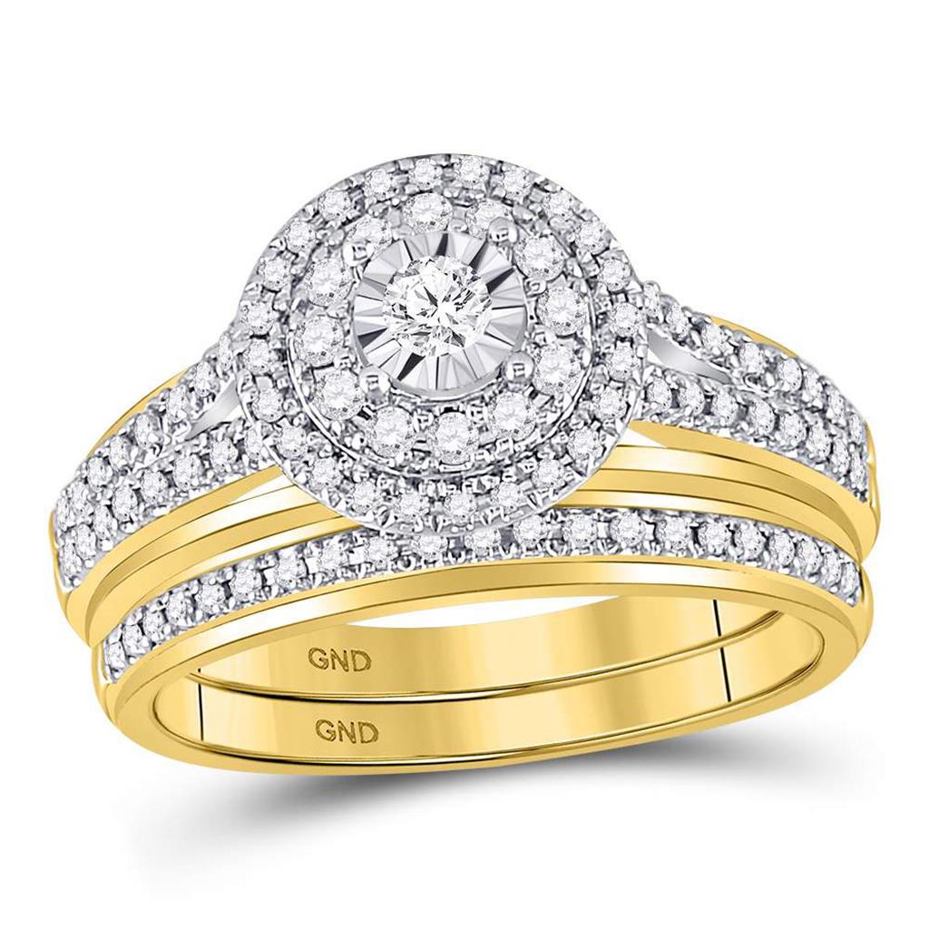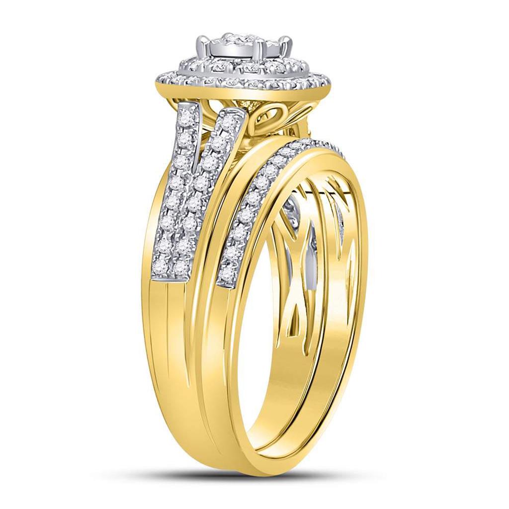 14k Yellow Gold Round Diamond Bridal Wedding Ring Set 1/2 Cttw