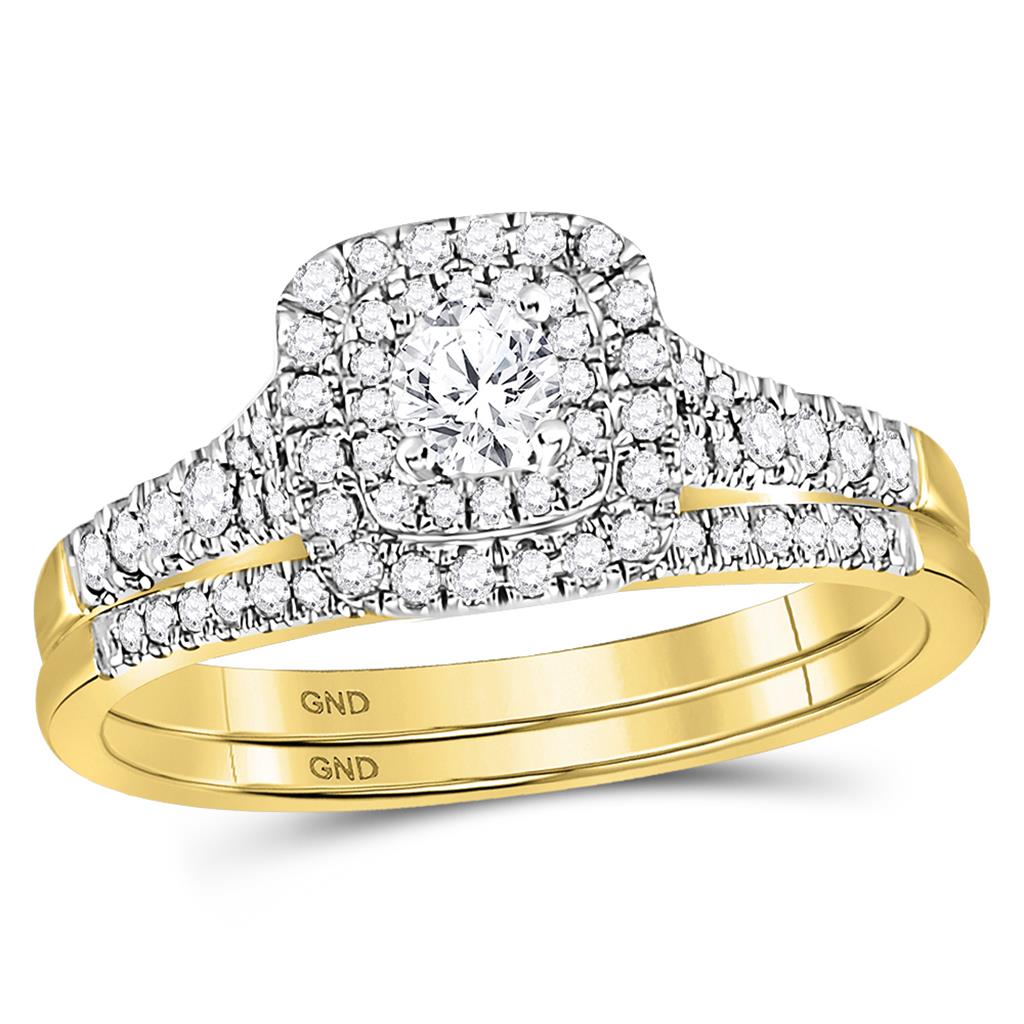 14k Yellow Gold Round Diamond Bridal Wedding Ring Set 1/2 Cttw