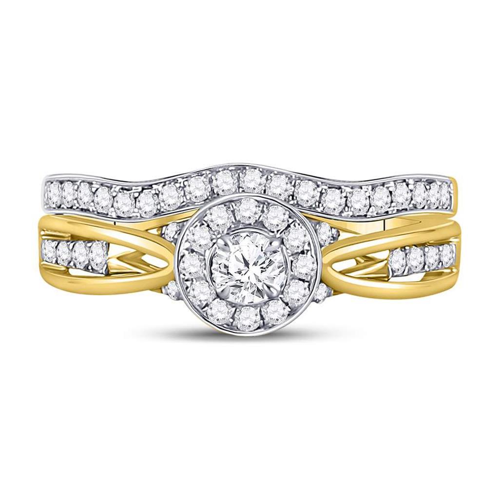14k Yellow Gold Round Diamond Bridal Wedding Ring Set 1/2 Cttw