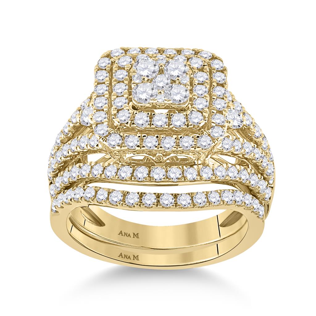Presenting a stunning 14k yellow gold bridal wedding ring set that is sure to take your breath away. With a total gemstone carat weight of 1 and 3/4, this ring...