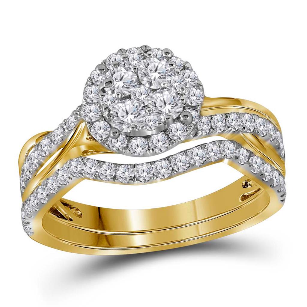 14k Yellow Gold Round Diamond Bridal Wedding Ring Set 1 Cttw